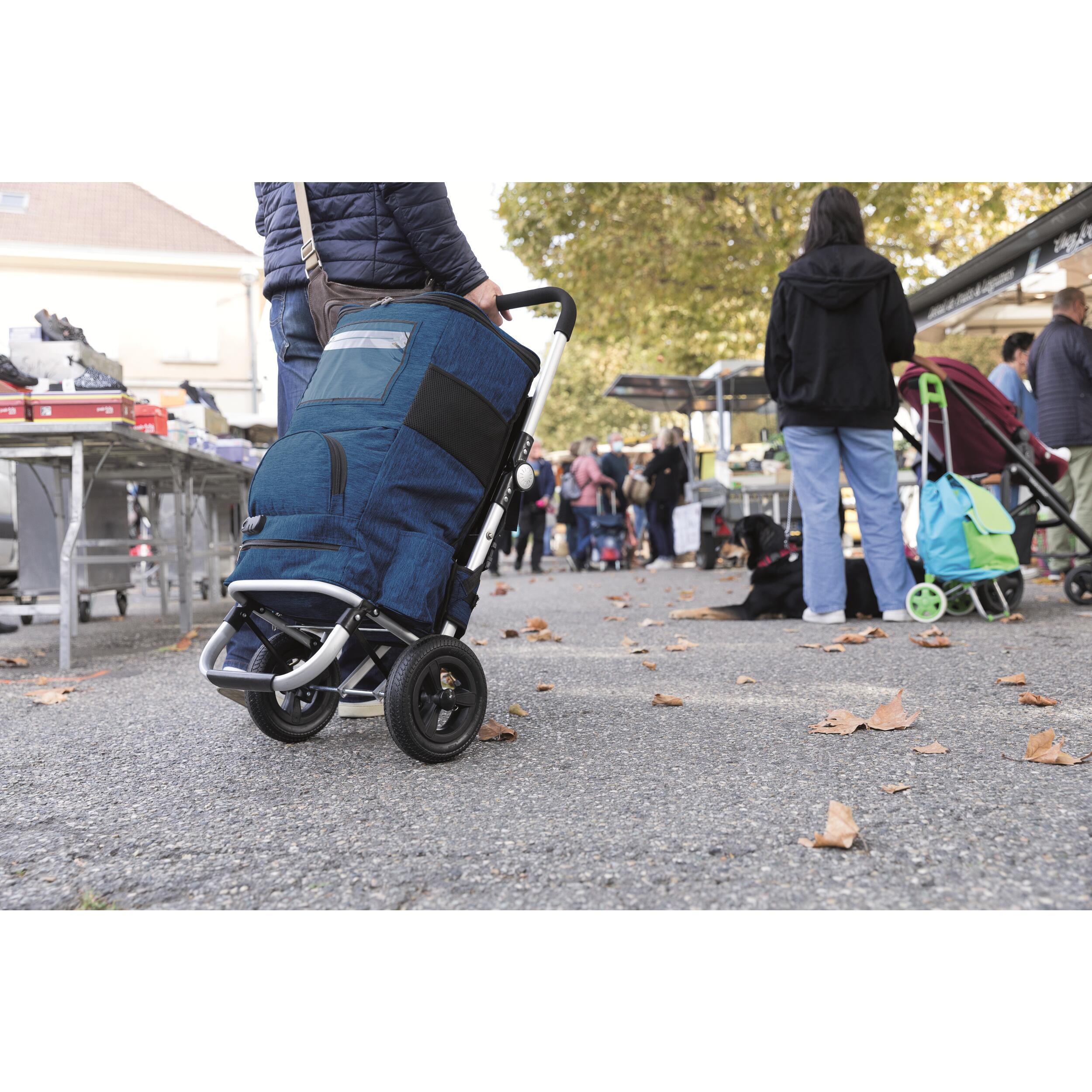 Grâce à ses grosses roues semi-gonflées (diamètre 22 cm), ce chariot ne s’enfonce ni dans le sable ni dans la terre, et roule silencieusement sur les surfaces dures comme le bitume ou les dalles. Sa structure pliable et robuste, en aluminium anodisé, supporte une charge maximale de 25 kg tout en restant légère et facile à transporter.