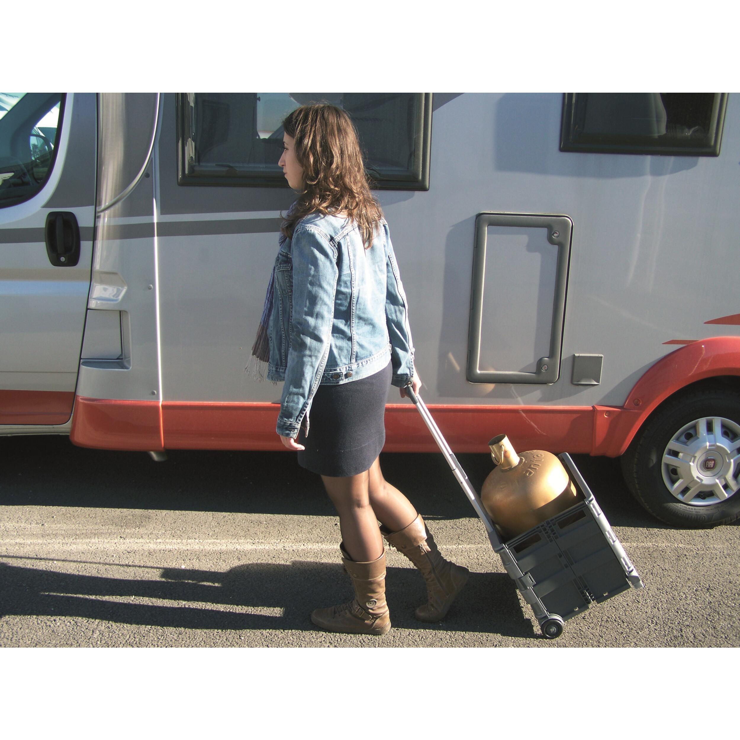 Pratique, le porte-tout pack & roll se plie et se déplie en quelques secondes pour transporter facilement jusqu'à 35 kg de charge utile. Fermeture sécurisée par 2 clips et bouton de verrouillage sur la poignée. Construction ABS et aluminium, roues avec surface en gomme antibruit et poignée télescopique.