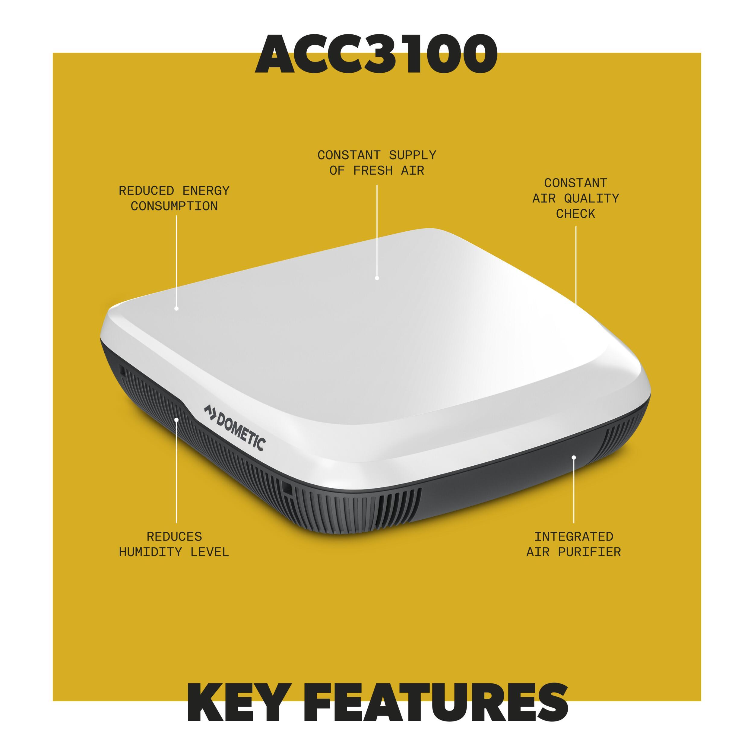 Le ventilateur de toit Dometic ACC3100 est un système de ventilation intelligent avec récupération de chaleur et purificateur d'air intégré, conçu pour maintenir une température idéale et une qualité d'air saine dans votre camping-car.