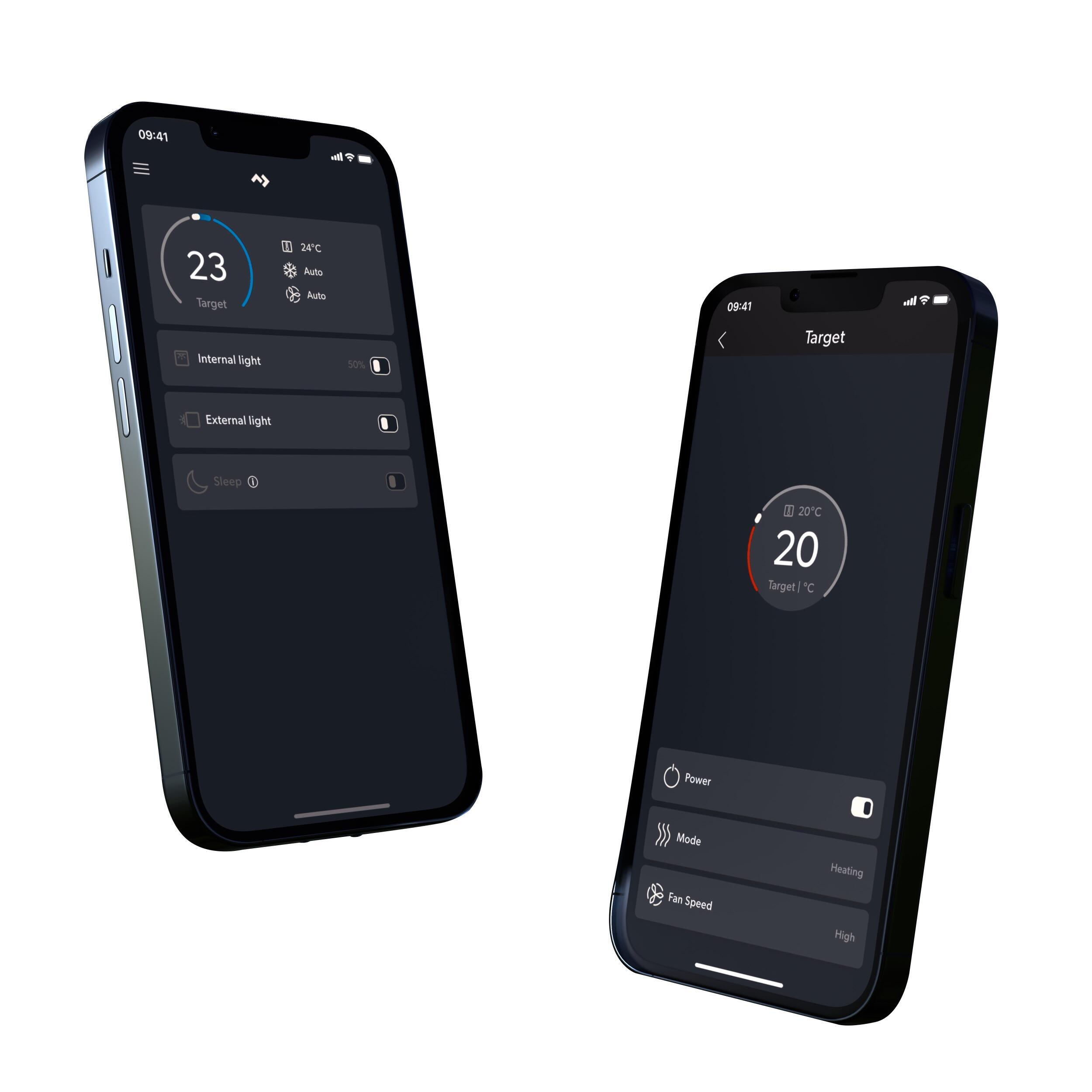 Avec l'application Dometic Climate, contrôlez facilement votre climatiseur depuis votre smartphone, ajoutant une touche de modernité et de commodité à votre expérience de camping. Cette fonctionnalité rend l'utilisation de votre climatiseur aussi intuitive que possible.