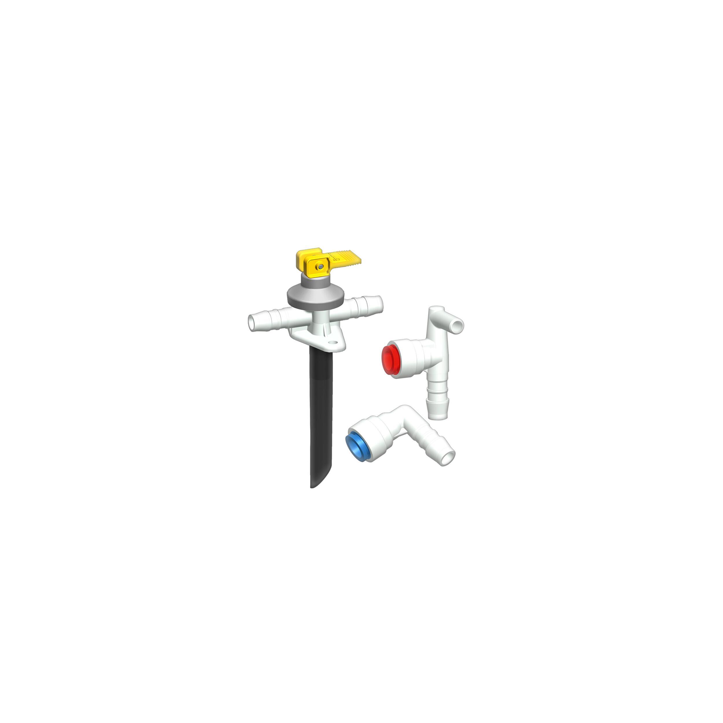 Soupape de vidange et raccords coudés pour pose de tubes rigides diam. 12mm (système Jon Guest)