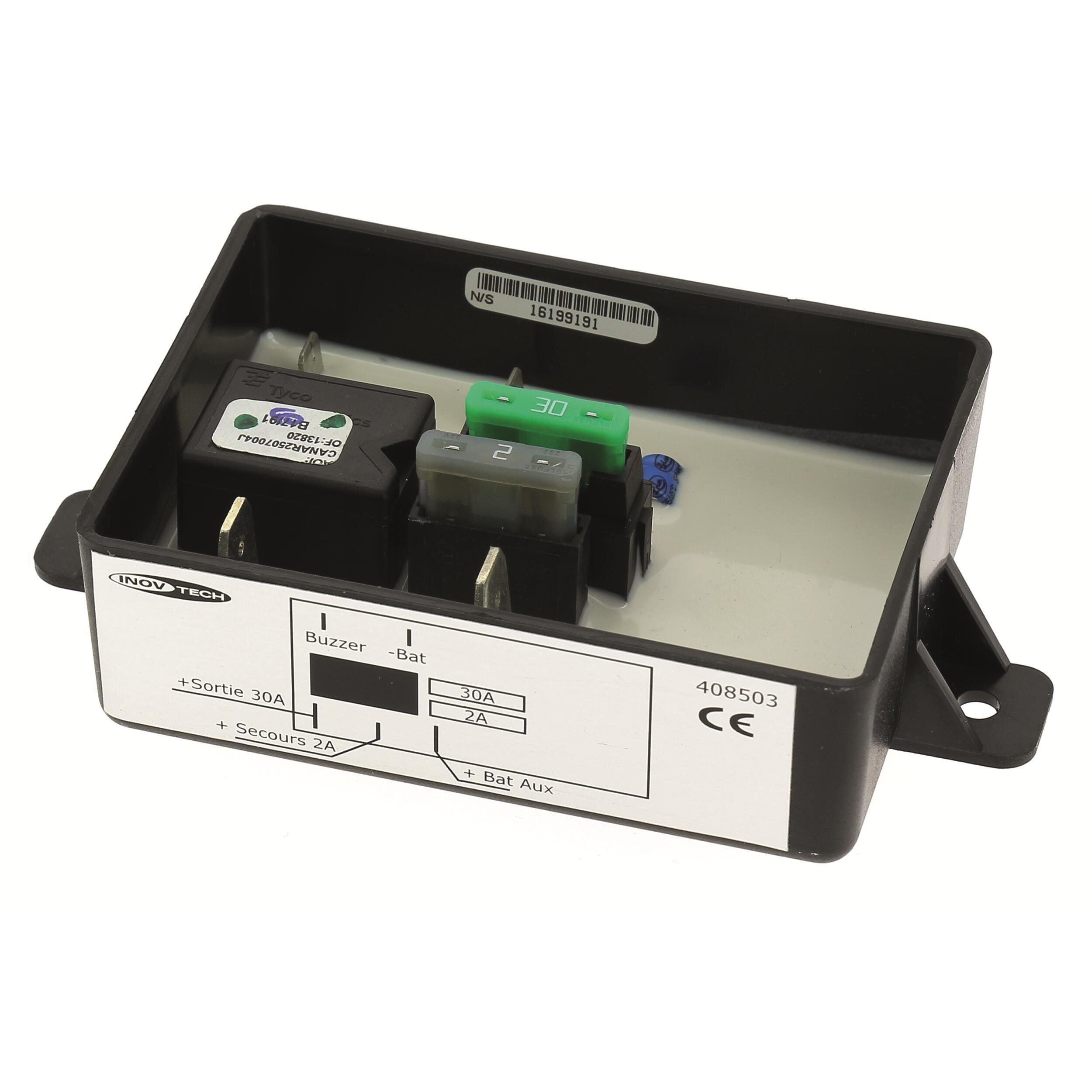 Si vous êtes équipés d'un séparateur classique non pourvue de cette fonction, vous pouvez ajouter ce coffret anti déchargeprofonde en post équipement en sortie de votre batterie auxiliaire.