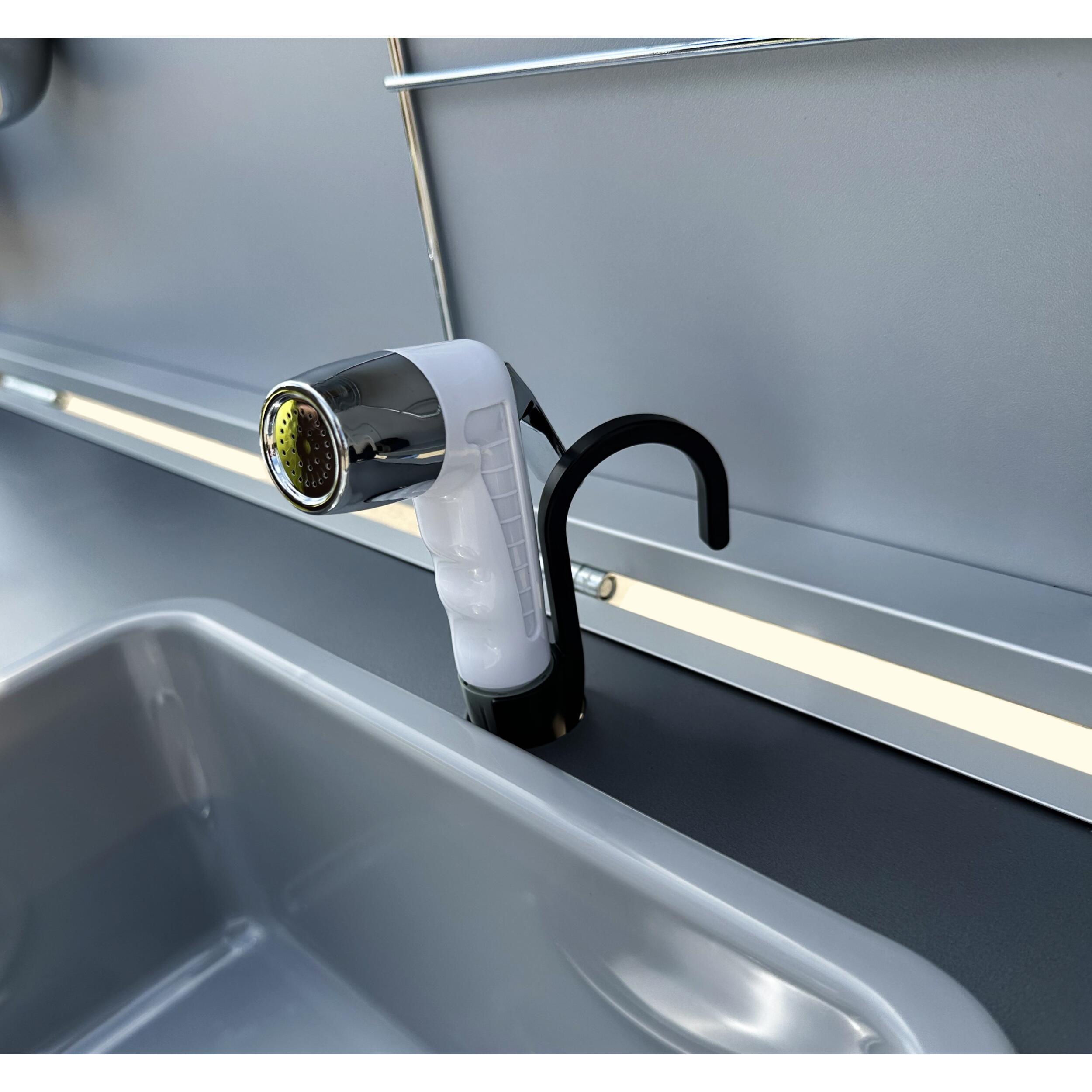 Sa batterie peut être chargée à l'avance à l'aide de son adaptateur 12 V USB. L'énergie ainsi stockée, la batterie est ensuite utilisée pour alimenter la pompe intégrée et créer un débit d'eau régulier 5L/minutes, vous permettant de profiter d'une expérience de douche revitalisante, où que vous soyez.
