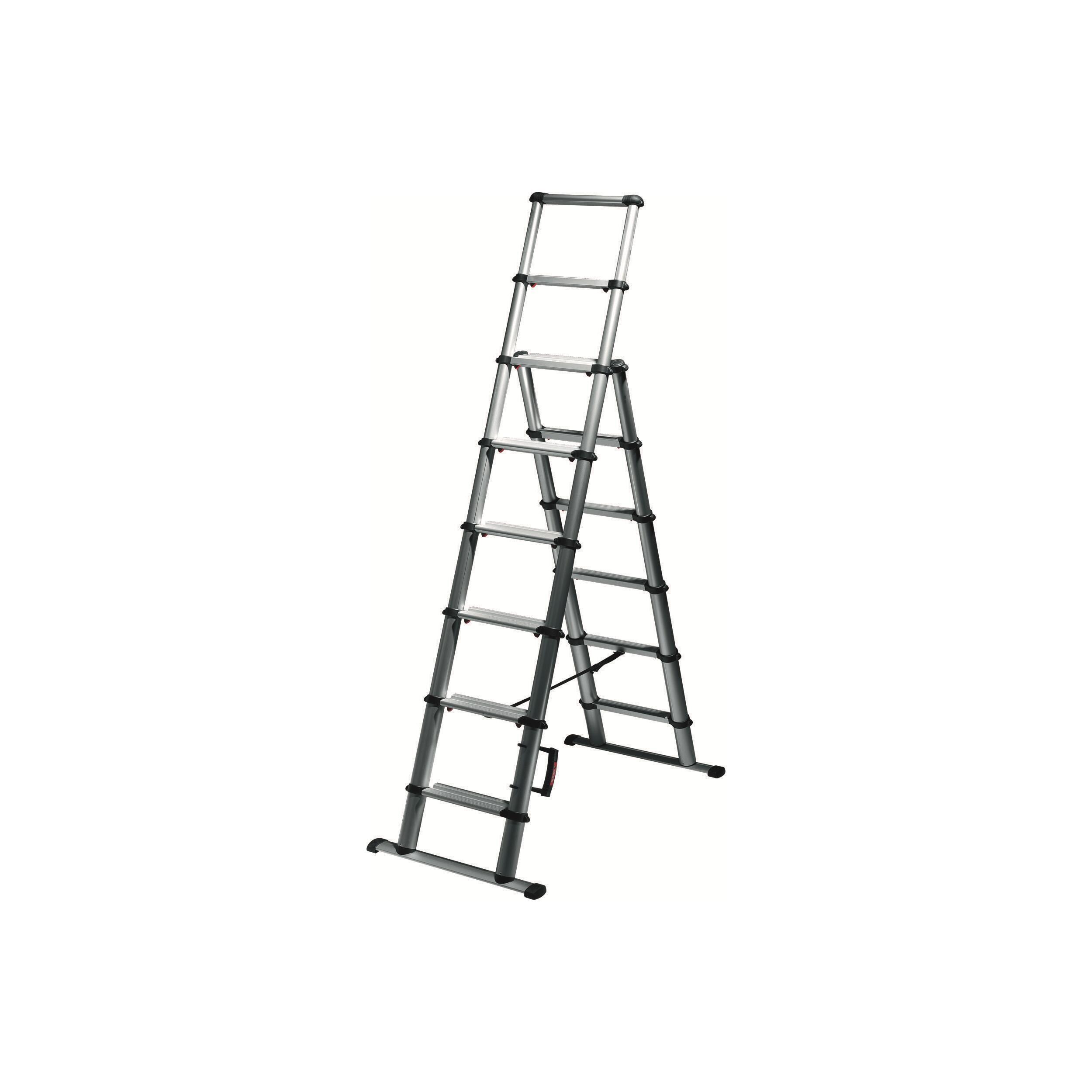 3 en 1 : échelle simple, échelle avec rattrapage de niveau ou escabeau. Intégralement repliable pour un rangement facilité. Alliage aluminium haut de gamme, verrouillage automatique avec leviers, rempilage intégrale en un geste et facilement transportable grâce à la poignée. Utilisation recommandée sur sols plats.