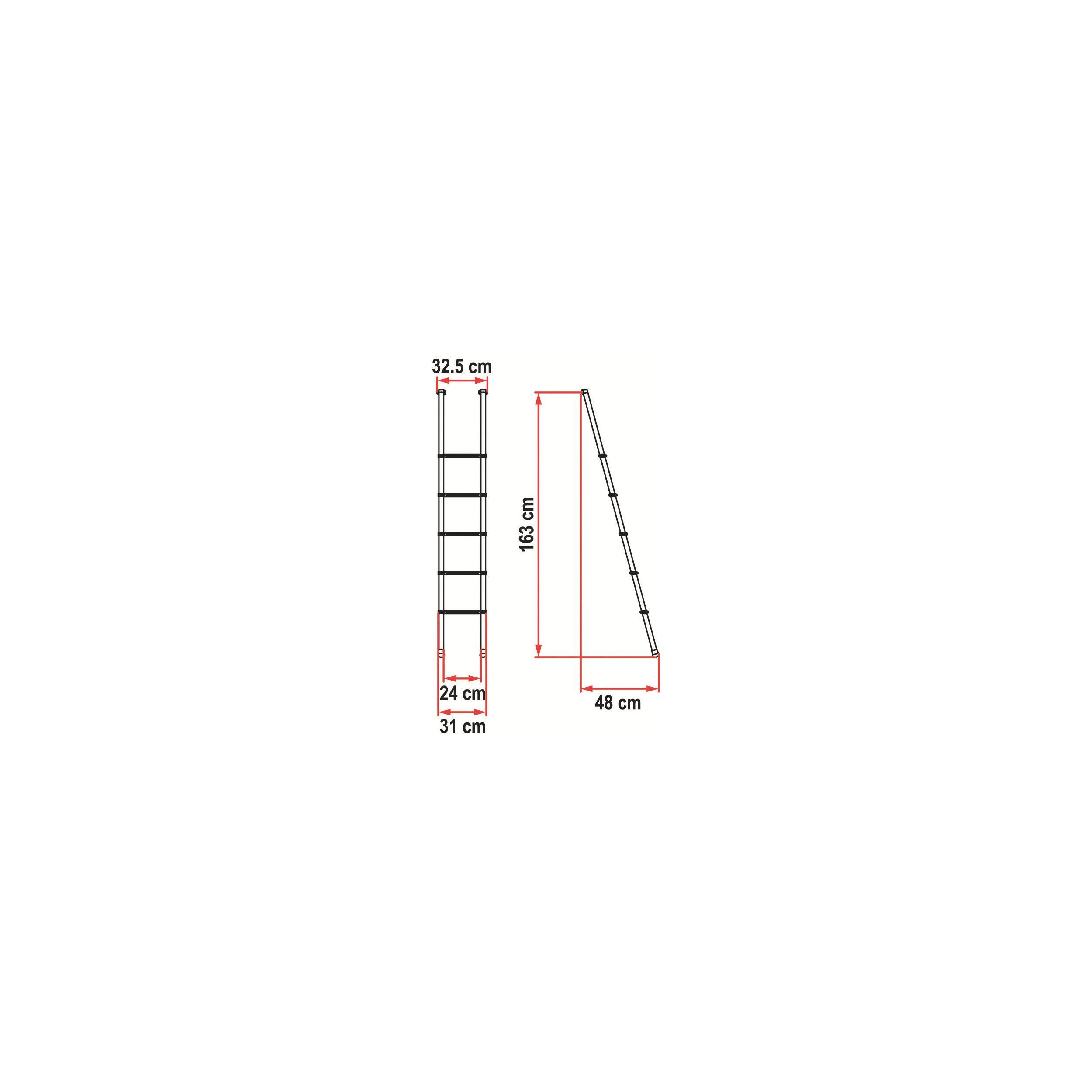 Echelle en aluminium anodisé (légère inclinaison de 15°) pour l'accès aux couchettes des camping-cars et caravanes. Crochets supérieurs en nylon très pratiques.