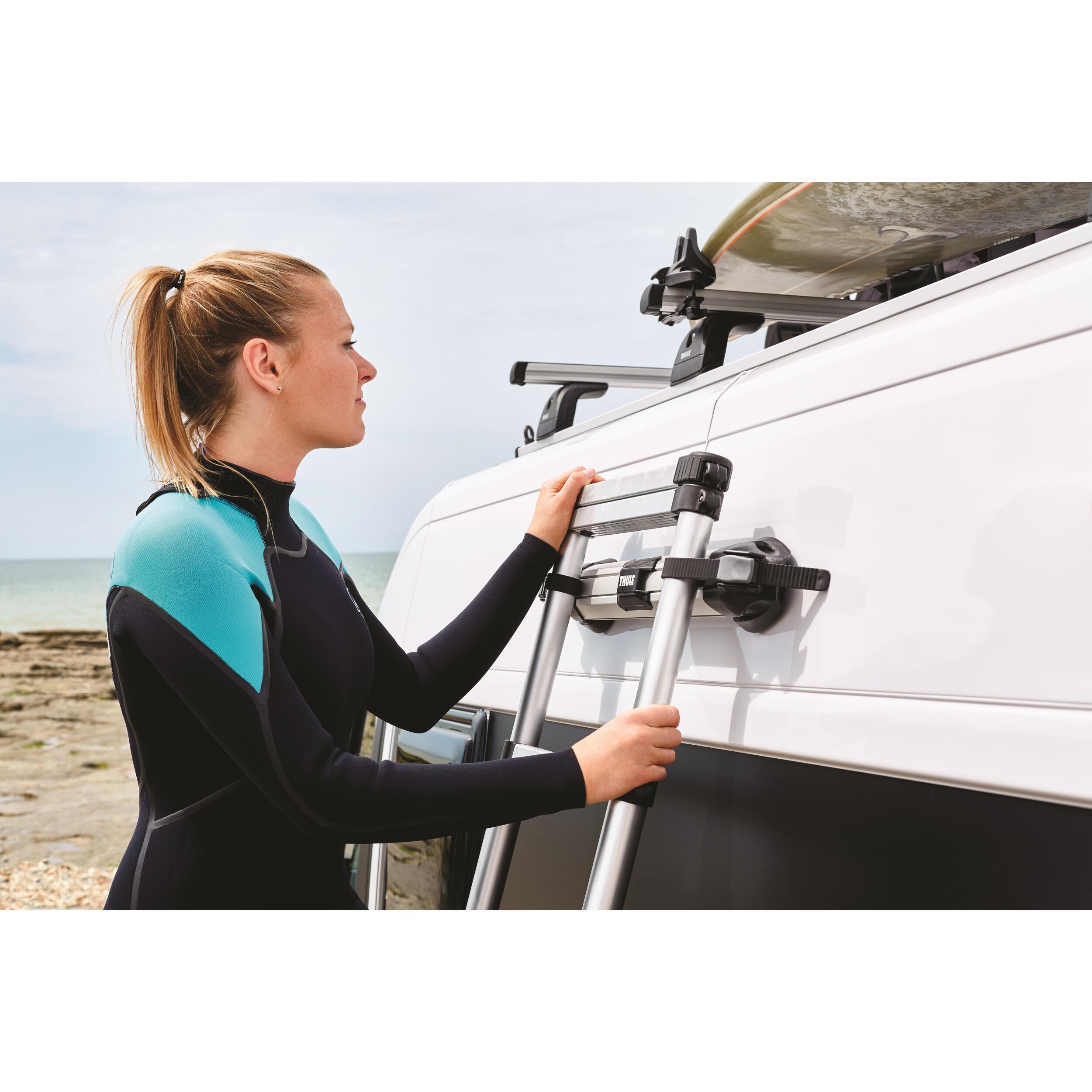 Permet de sécuriser l'échelle Van Ladder sur la paroi du véhicule. Compatible avec les Windscreen et les organiseurs Thule.
