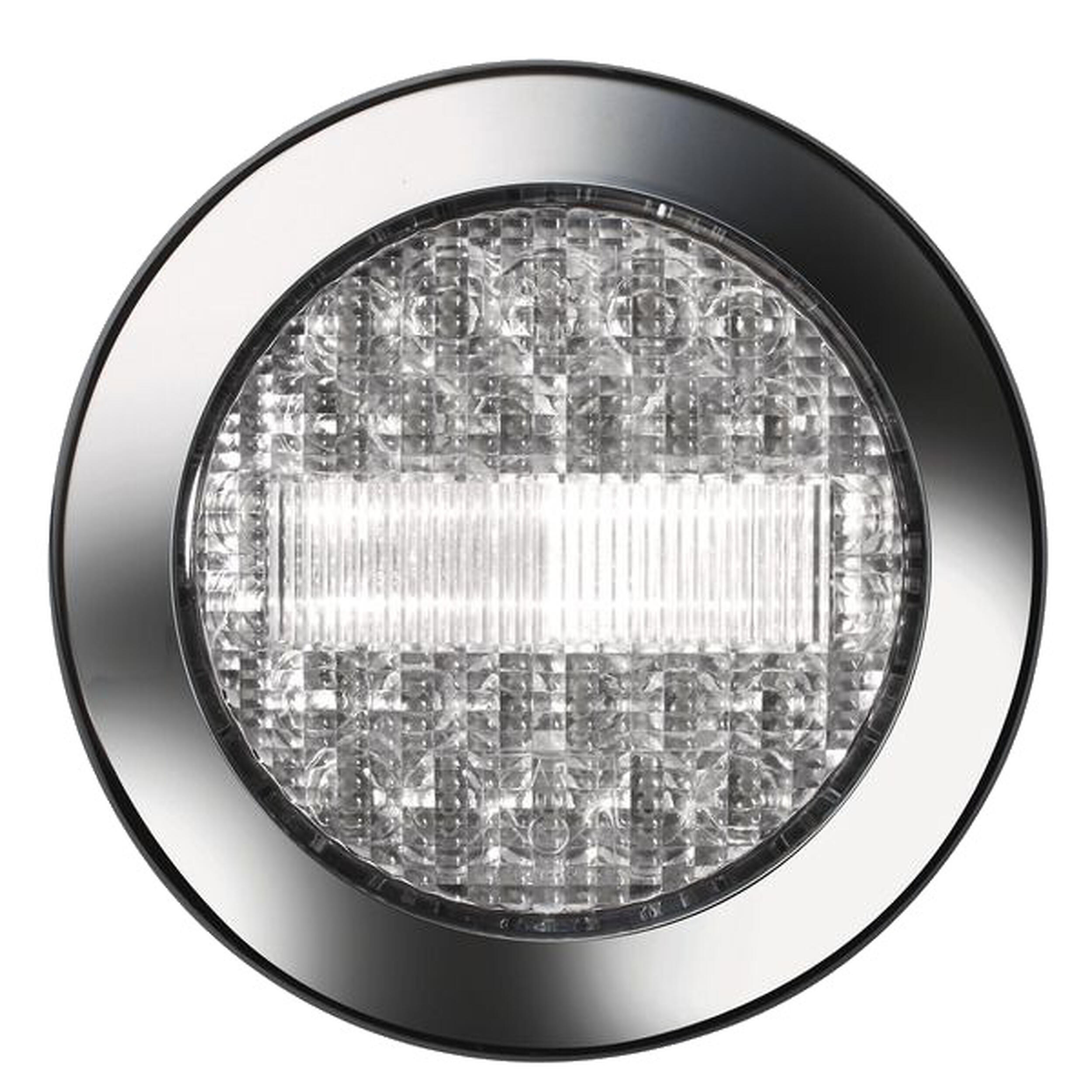 Feu étanche LED à encastrer. Finition avec enjoliveur chromé brillant.