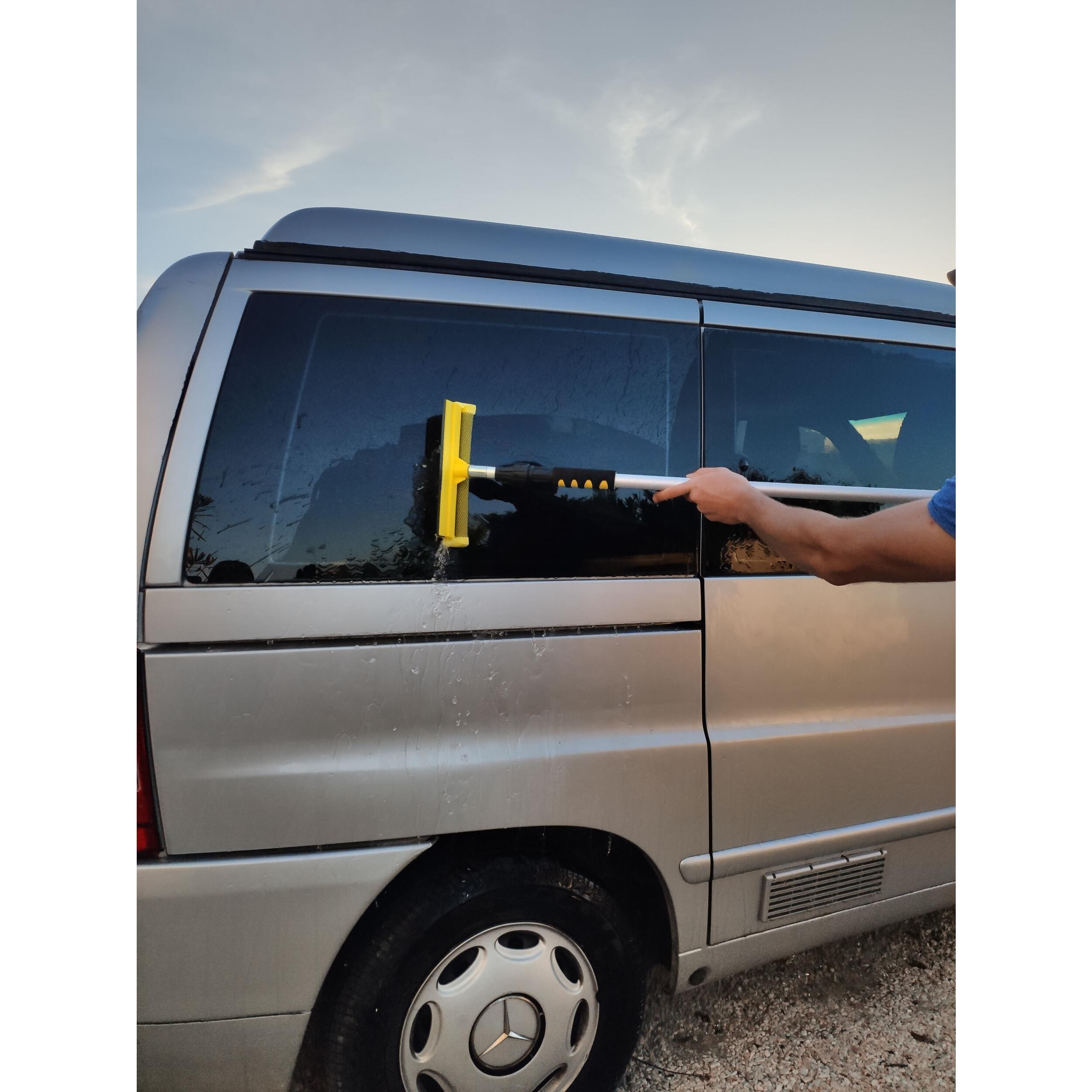 Double fonction raclette et brosse. Ce lave-vitre téléscopique double face est muni…