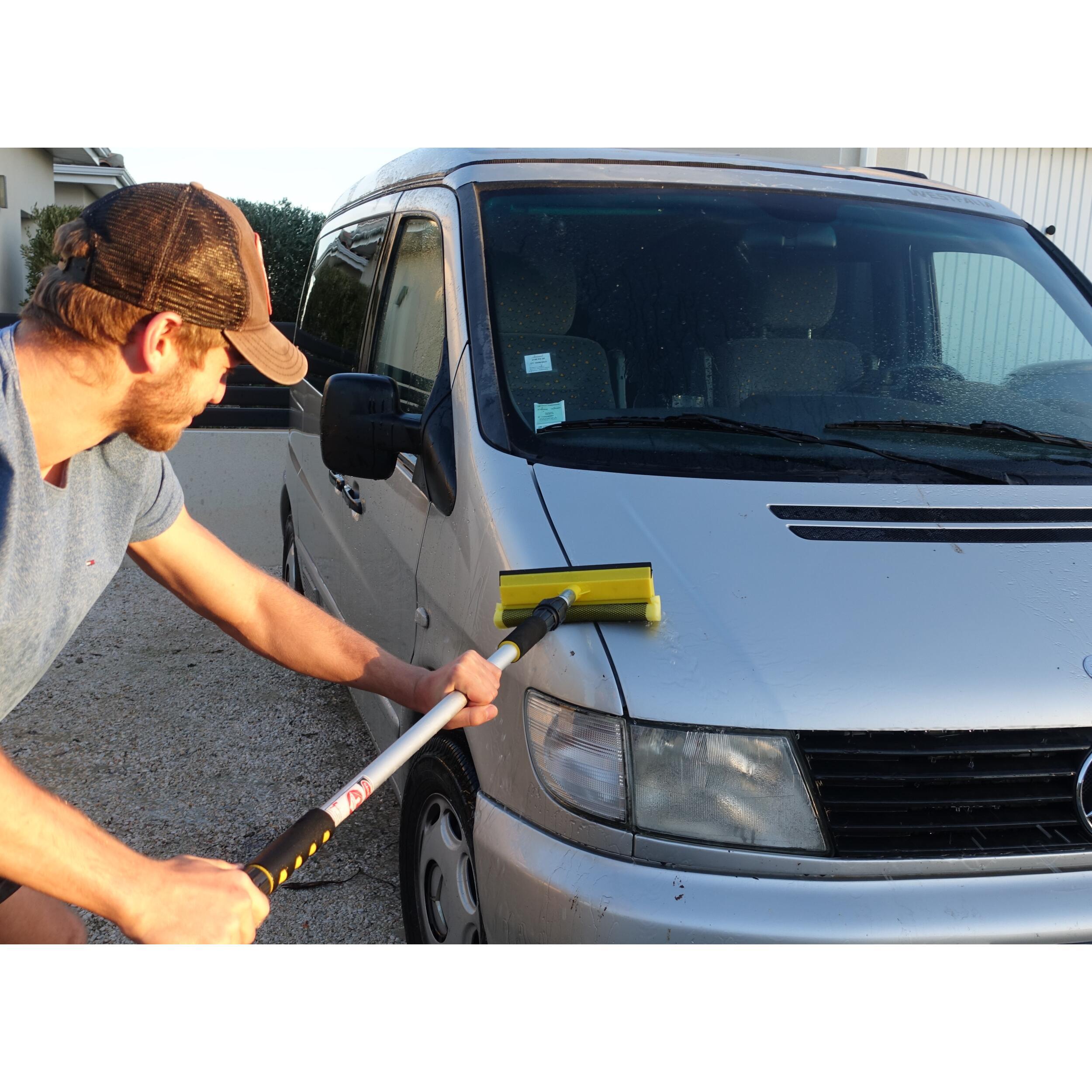 Double fonction raclette et brosse. Ce lave-vitre téléscopique double face est muni d'un côté brosse en mousse alvéolée pour décoller les saletés, et d'une raclette pour une finition parfaite de l'autre.