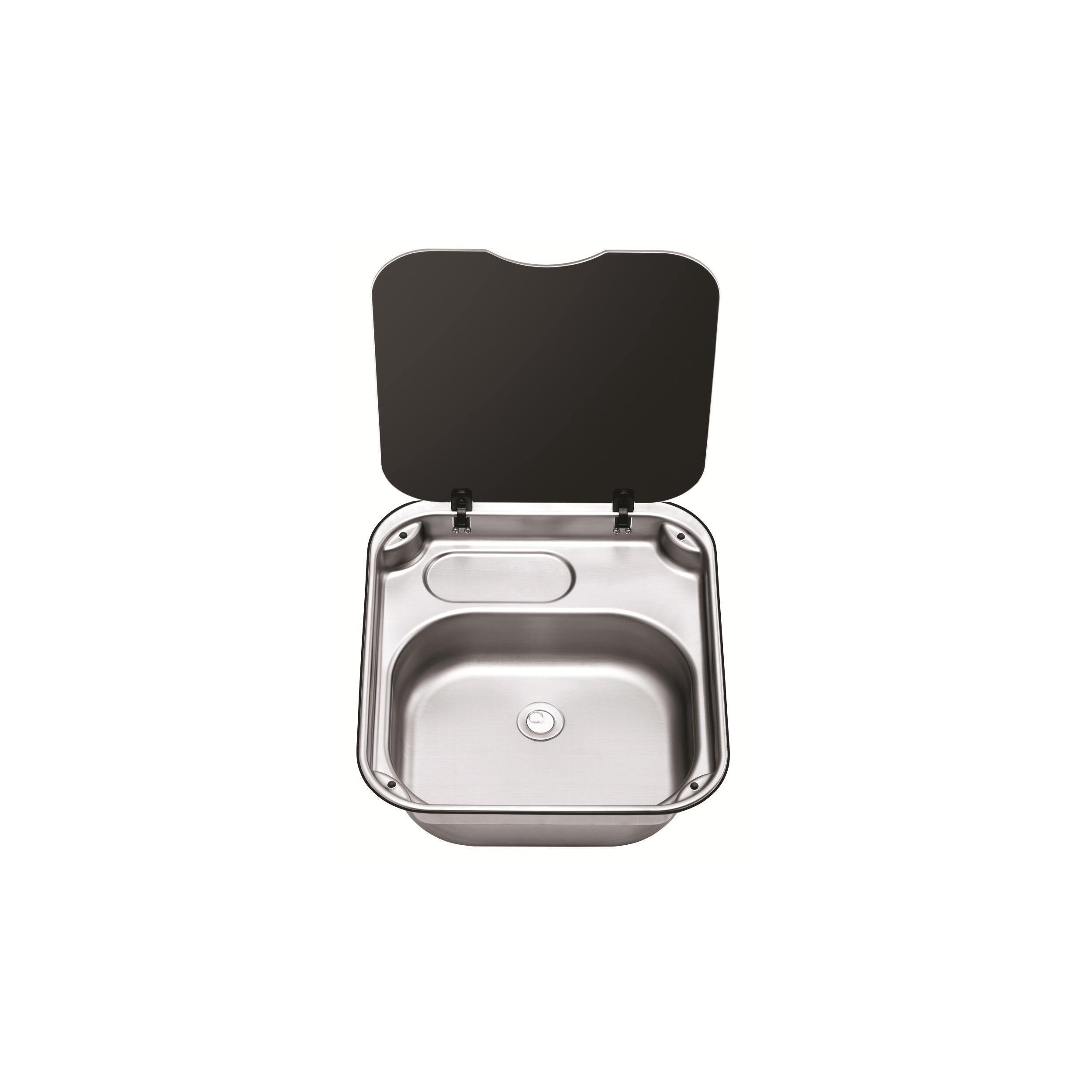 Evier encastrable en inox avec couvercle en verre trempé résistant à la chaleur.