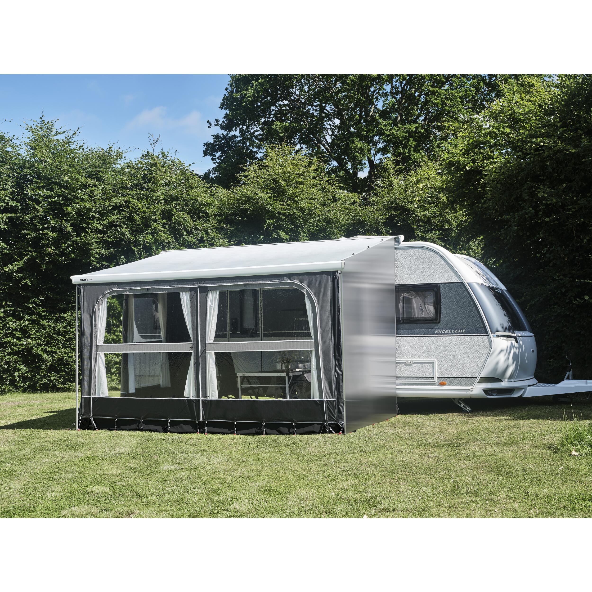 Les deux panneaux latéraux et la façade créent un espace de vie fermé sous la marquise de votre camping-car. De puissants aimants solidarisent le toit et les panneaux latéraux de la marquise, et la façade s’installe facilement grâce à une fermeture éclair. Vous pouvez placer Buddy sur la marquise là où vous voulez. Il vous offre la possibilité unique de créer à la fois un espace de vie fermé et une terrasse couverte sous l'auvent marquise du camping-car.