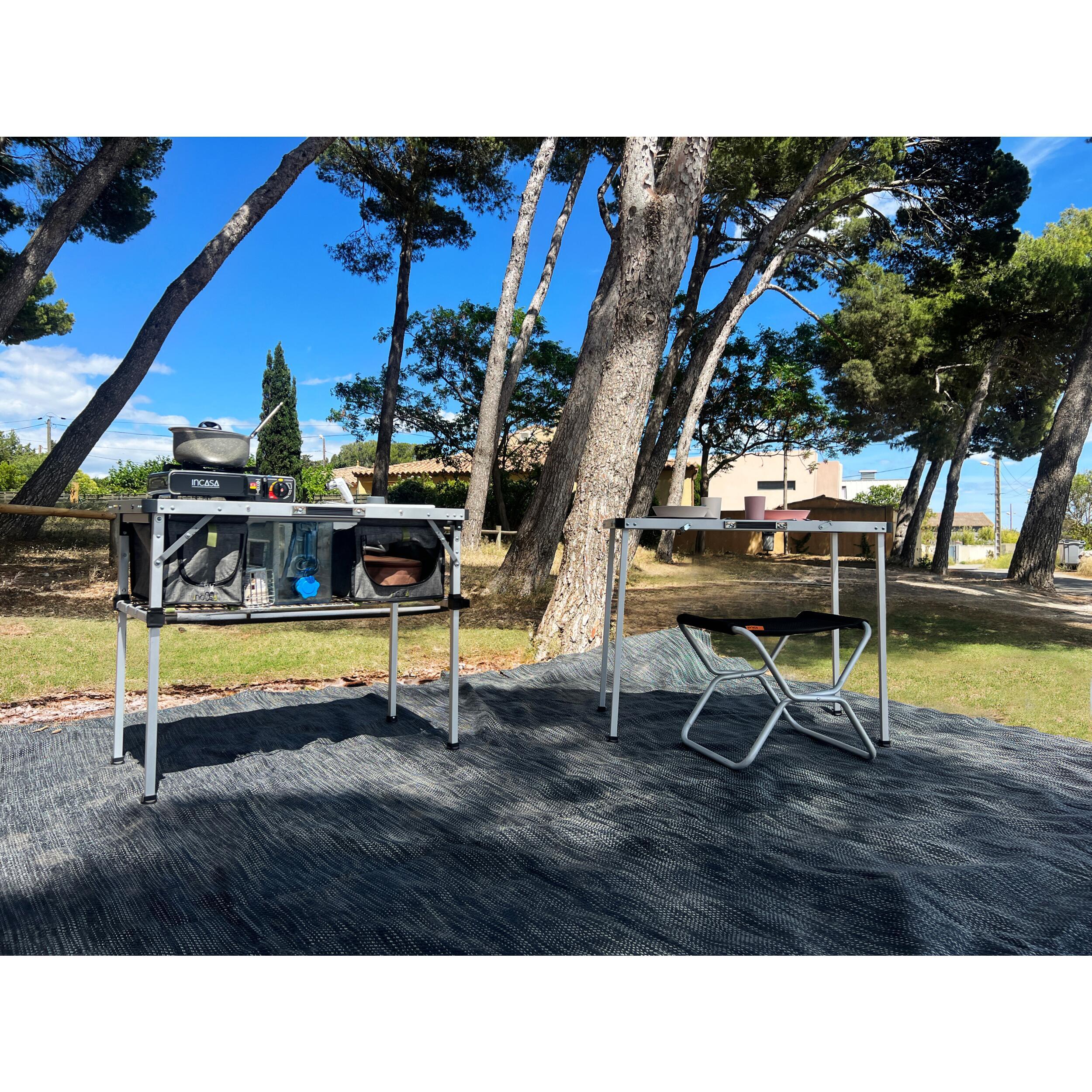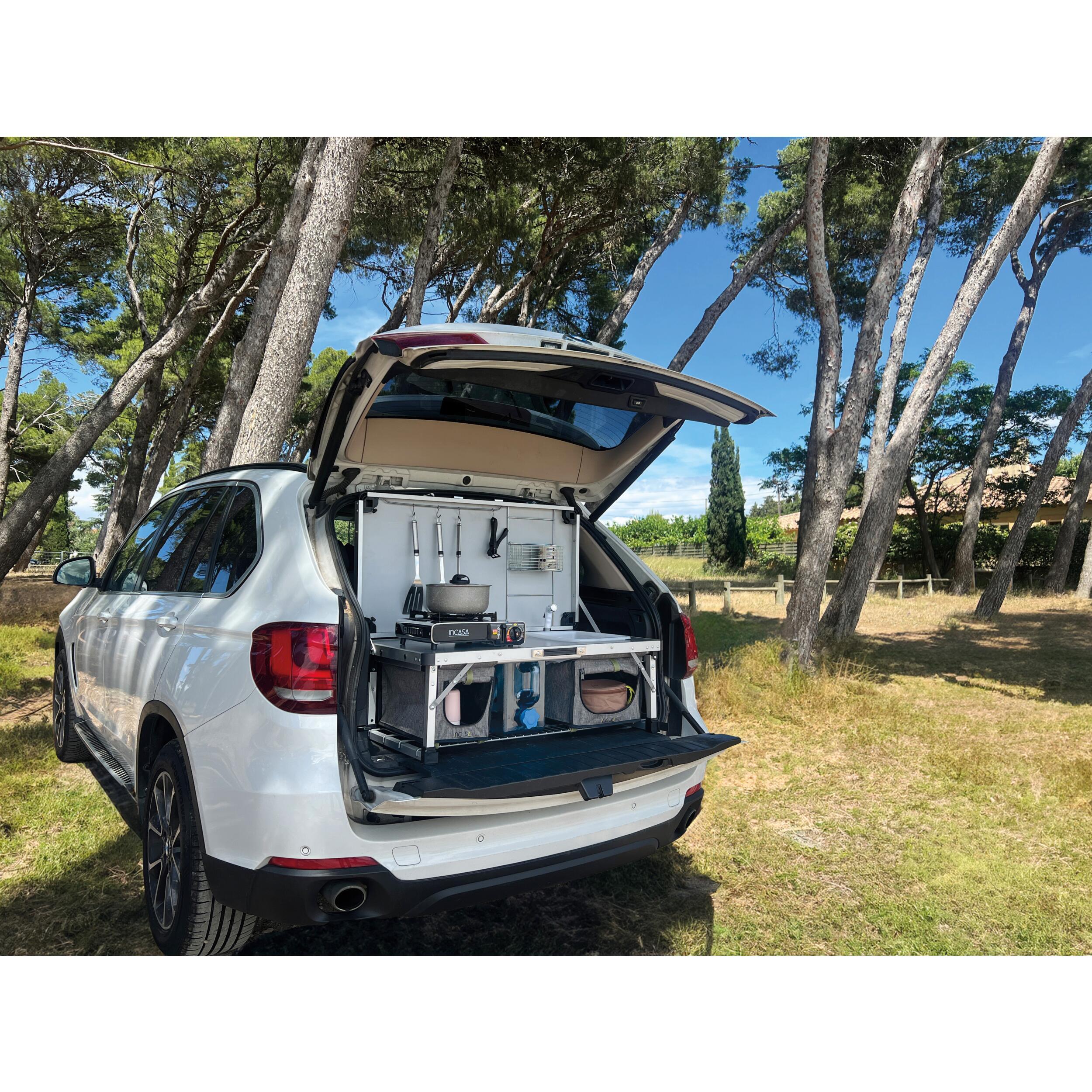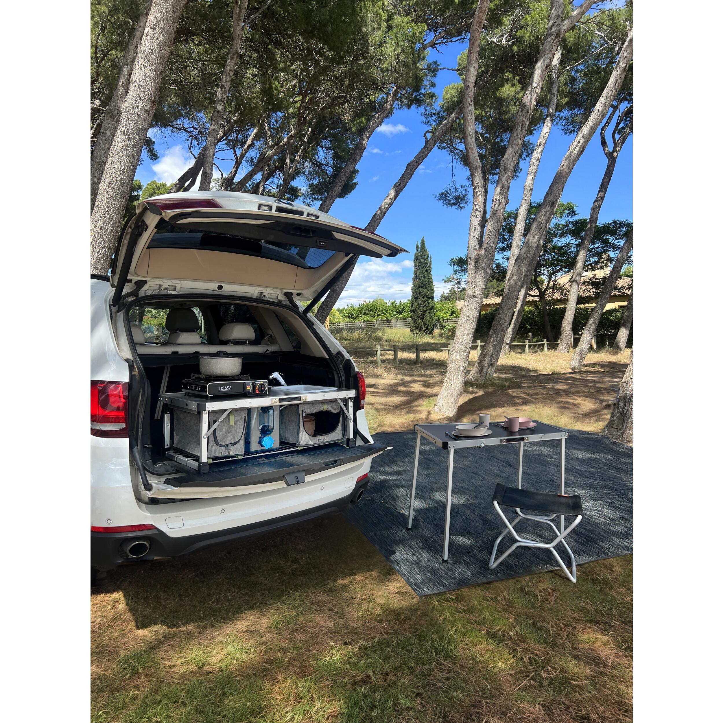 Avis à tous les nomades qui voyagent toute l'année ! Vous cherchez une solution multifonctions pour cuisiner aussi bien en plein air sous un beau soleil qu'abriter sous votre hayon en cas de pluie imprévue ? Ne cherchez plus ! Incasa vous apporte la réponse parfaite à votre besoin avec son Kitch&Box ! Disponible en deux tailles, vous trouverez forcément le Kitch&Box qu'il vous faut. Sa polyvalence vous permet de l'utiliser de plusieurs manières : comme meuble de cuisine avec son couvercle ouvert, posé dans le coffre de votre véhicule grâce à ses pieds rétractables, ou encore comme seconde table en retirant le couvercle via un système de loquets. L'idéal pour agrandir votre espace de cuisine !