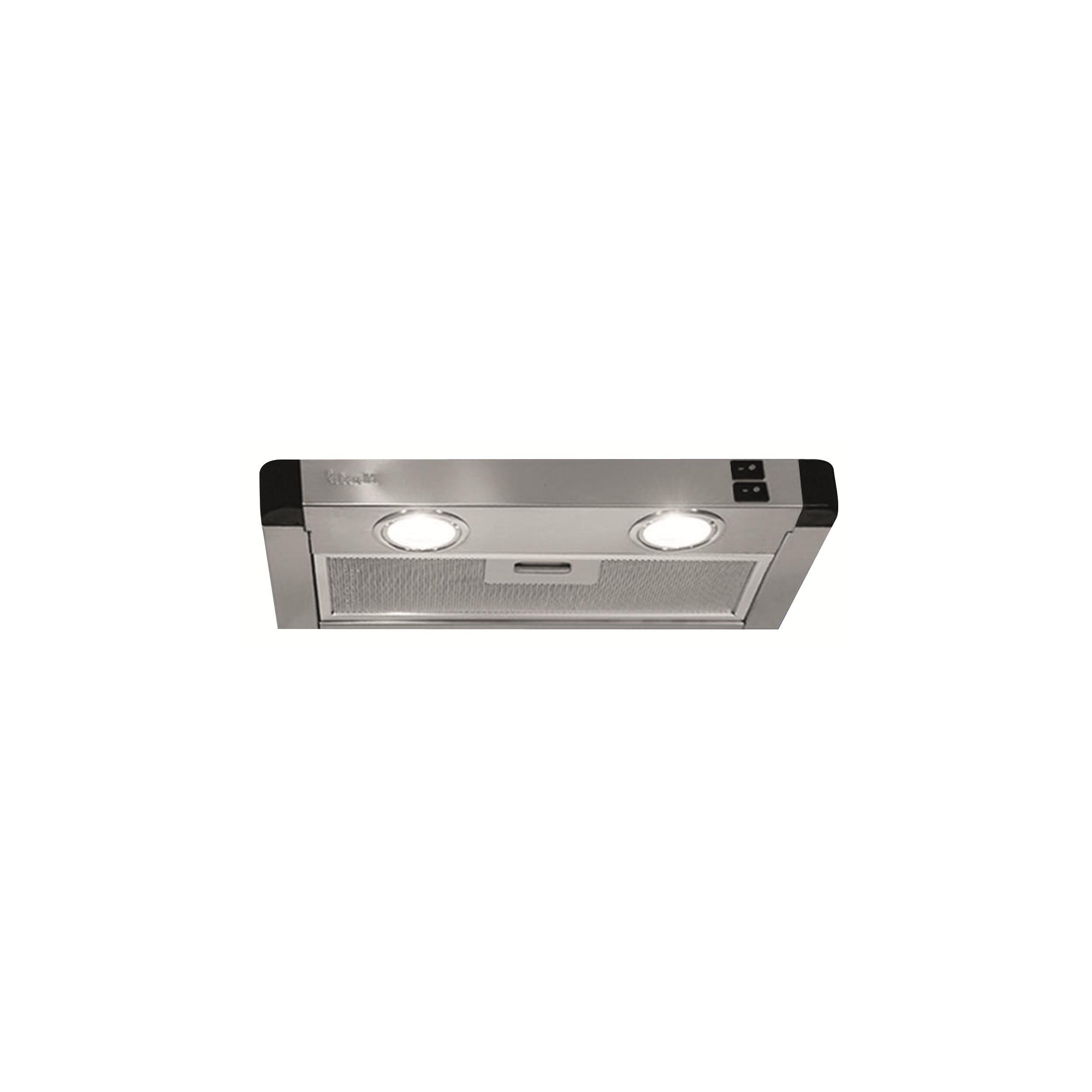 Hotte à recyclage (pas d’extraction d’air vers l’extérieur). Modèle compact en inox…