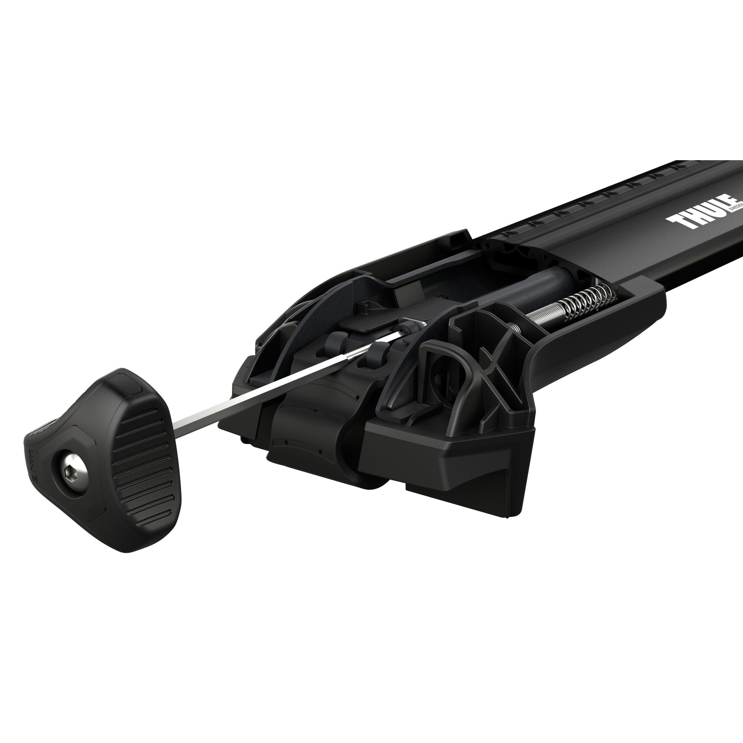 Pack de 4 pieds Thule Edge pour barres de toit, avec limiteur de couple de serrage et antivols Thule One-Key. Installation facile et sécurisée.