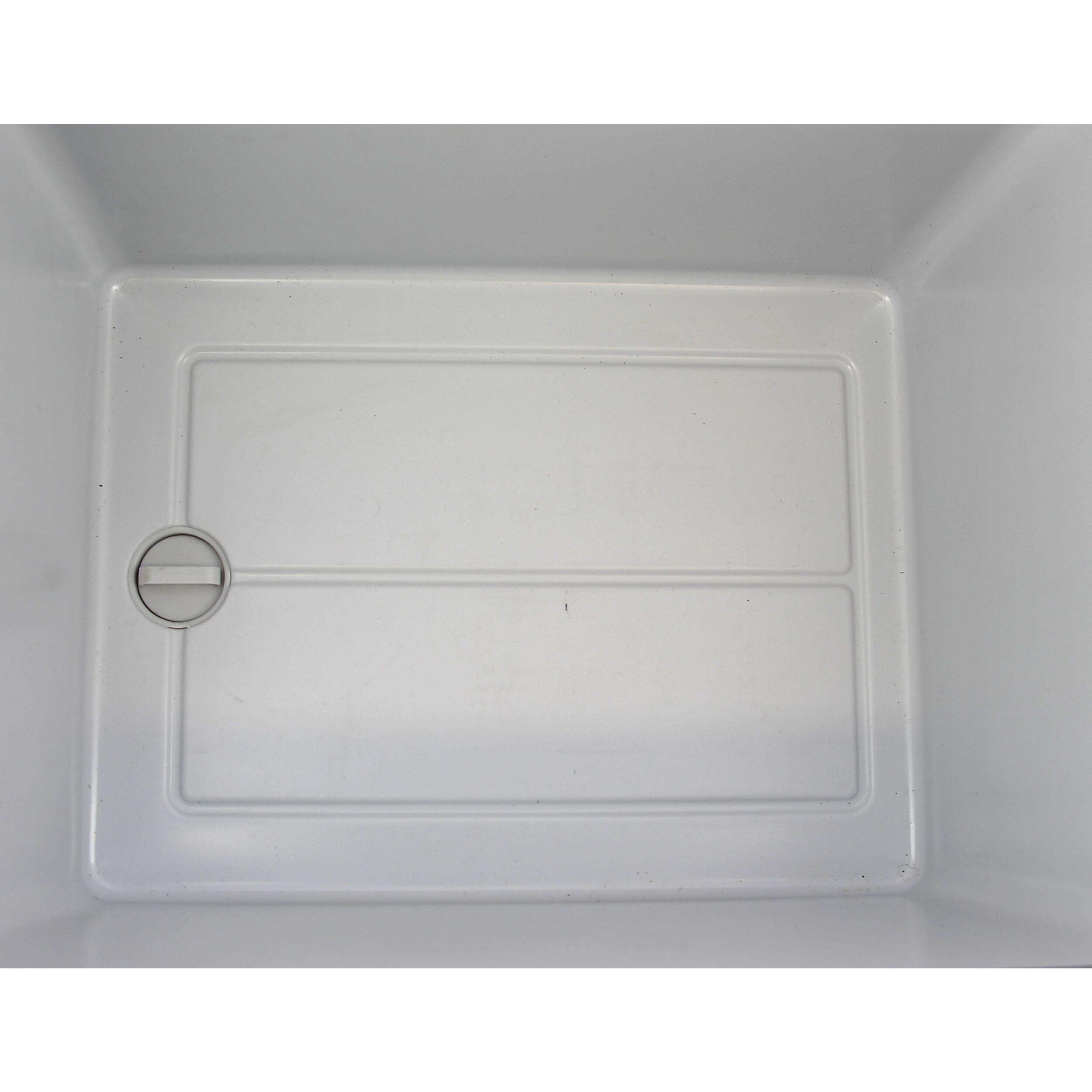 Le couvercle sert de plateau avec quatre porte-gobelets moulés et un espace plat pour poser vos plats : idéal lors des pauses repas. Les poignées latérales robustes facilitent le transport, et un bouchon de vidange placé au fond simplifie l’entretien.