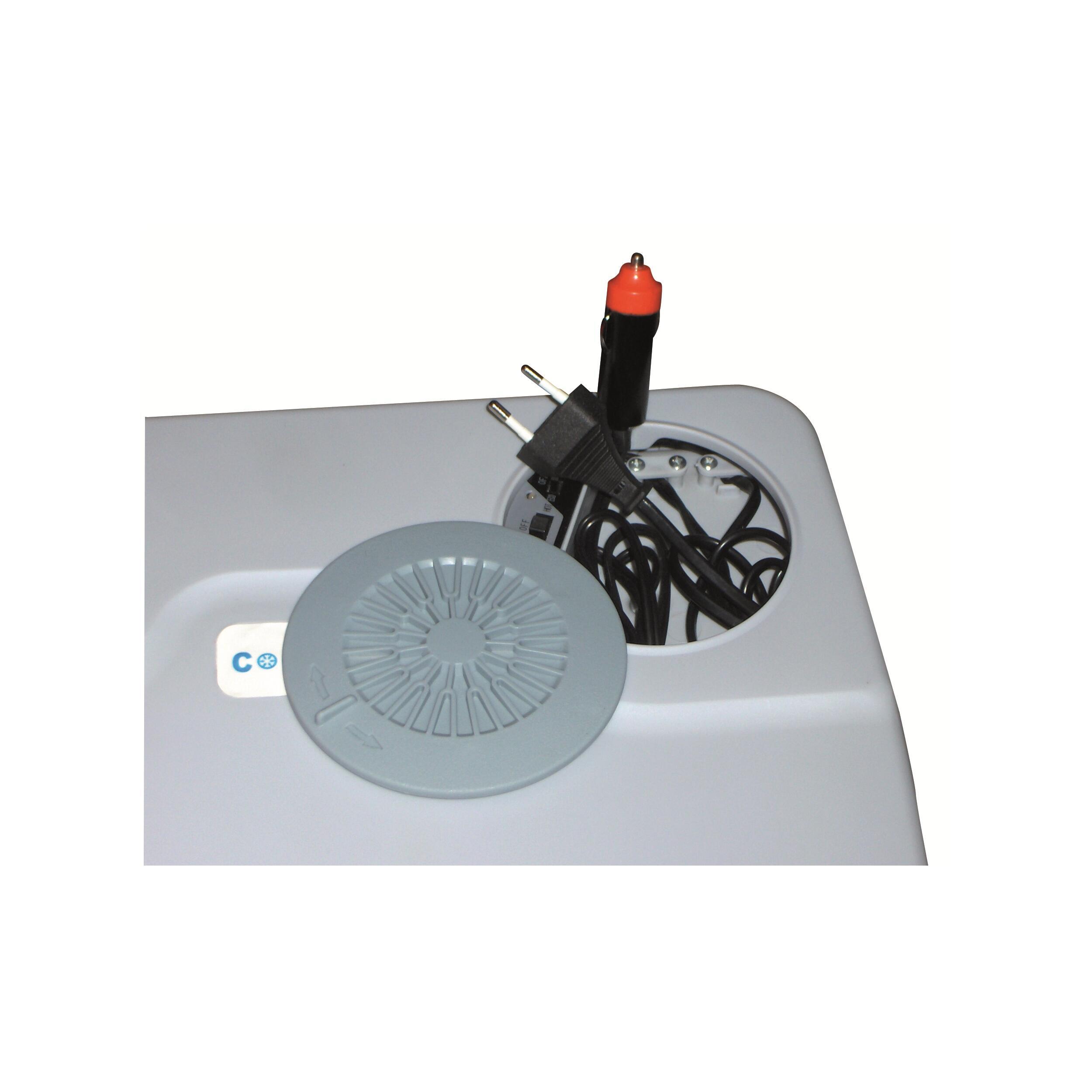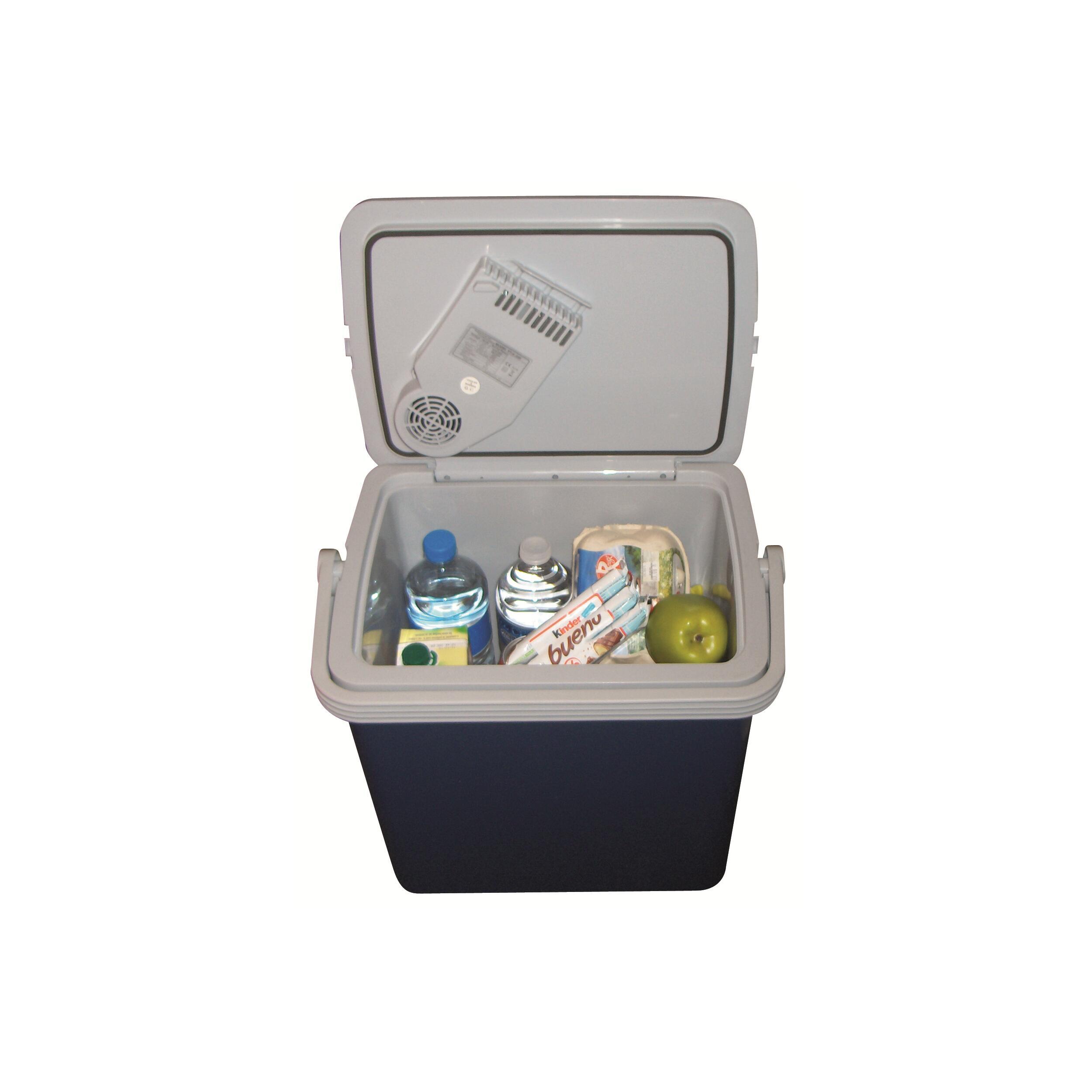 Glacière thermoélectrique avec isolation haute performance. Refroidissement et réchauffement par effet Peltier. Fonction froid : jusqu'à -15 °C par rapport à la température ambiante. Fonction chaud : jusqu'à 60°C. Avec témoin lumineux signalant la sélection. Range cordons intégré dans le couvercle. Tension : 12/220V.