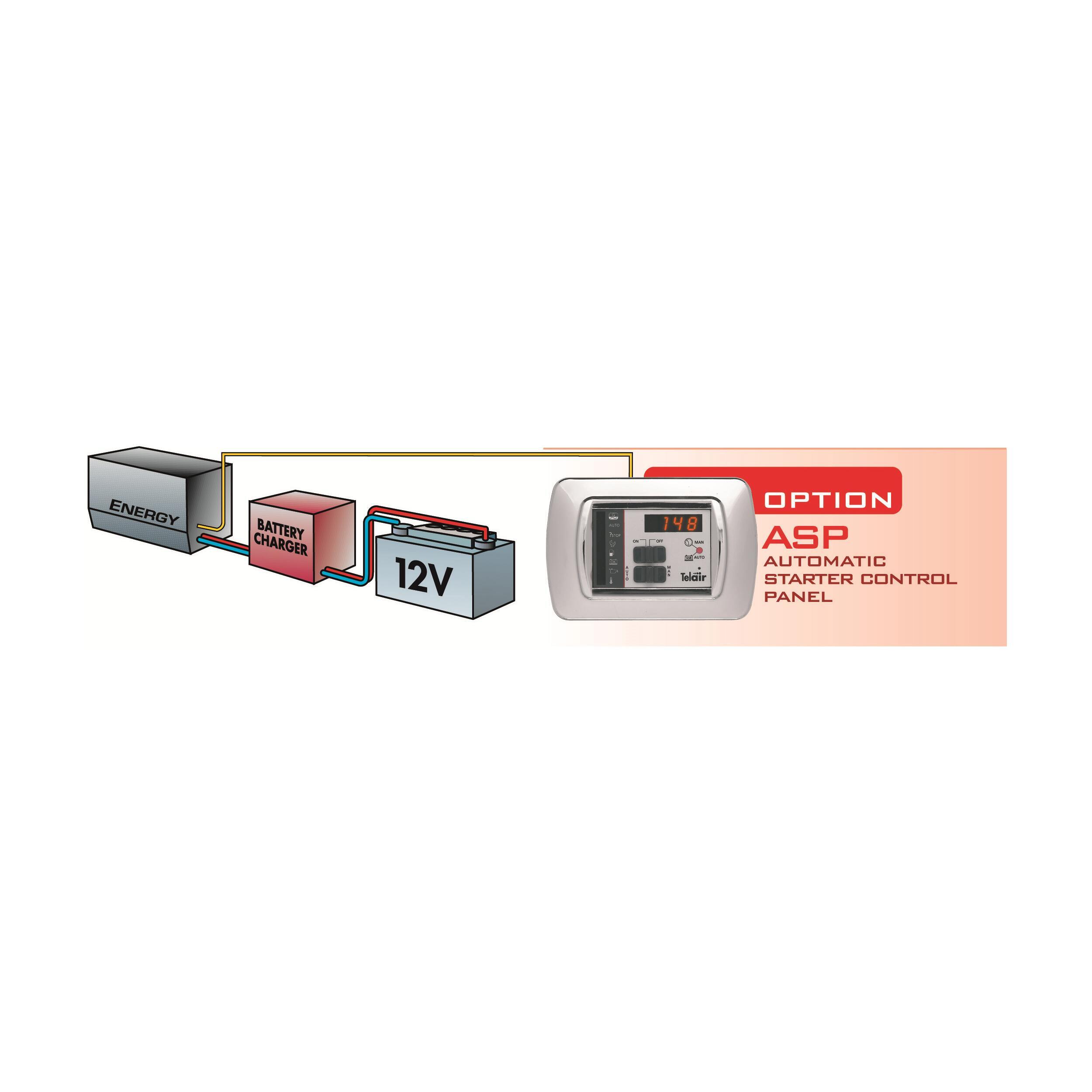 Avec l'ASP vous n'aurez plus à vous préoccuper de la mise en route du groupe Telair pour charger vos batteries. Système automatique d'activation (tension batterie : 11,5 V) et désactivation (tension batterie : 13,5 V) du groupe Energy lorsque celui-ci est relié au chargeur de batterie (12 ou 220 V) du véhicule.