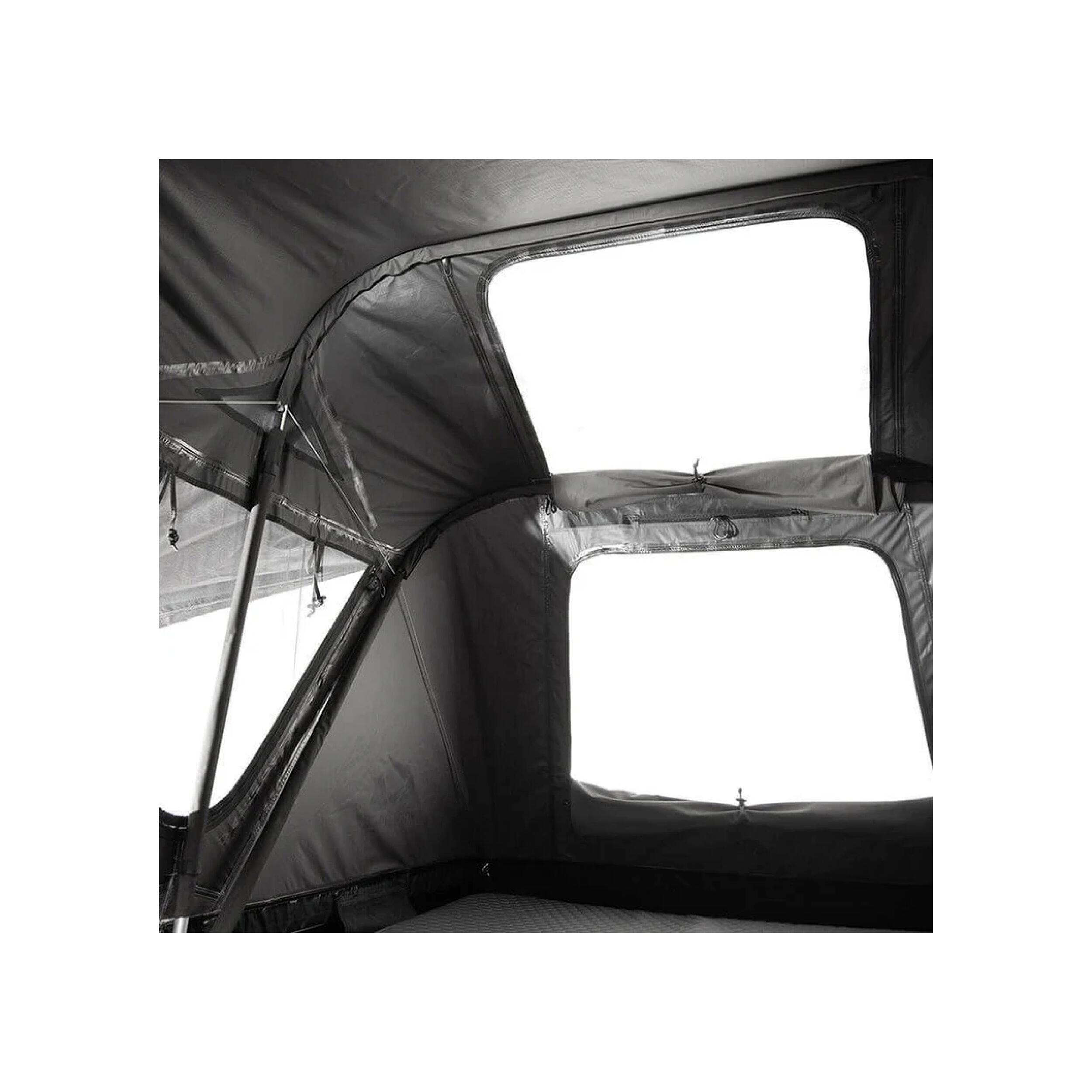 Ouvrez entièrement la façade avant pour transformer votre tente en terrasse panoramique. Admirez la nature à 360° ou observez les étoiles grâce aux grandes fenêtres occultantes. Profitez d’une obscurité totale pour un sommeil réparateur, ou laissez entrer la lumière naturelle pour un réveil tout en douceur. Avec une moustiquaire en option, la Roof Space 2 garantit également des nuits fraîches et confortables lors des chaudes soirées d'été.