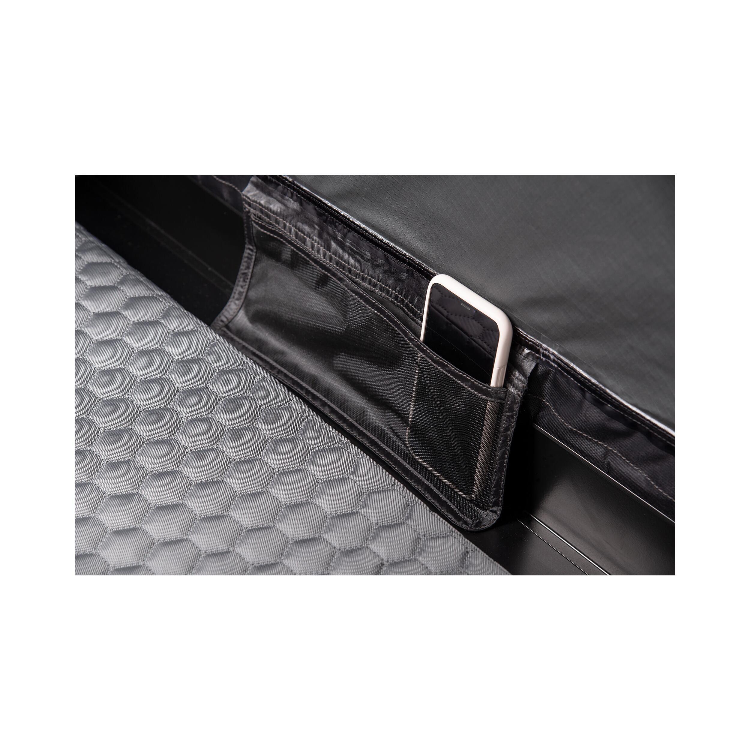 Avec 30 cm d’espace libre entre le couchage et l’entrée, vous pouvez ranger sacs, chaussures ou accessoires. Des poches latérales pratiques accueillent vos objets personnels, comme vos clés ou votre téléphone. De plus, un espace de 4,5 cm dans la coque permet de laisser vos oreillers et sacs de couchage à l’intérieur pour un démontage encore plus rapide.