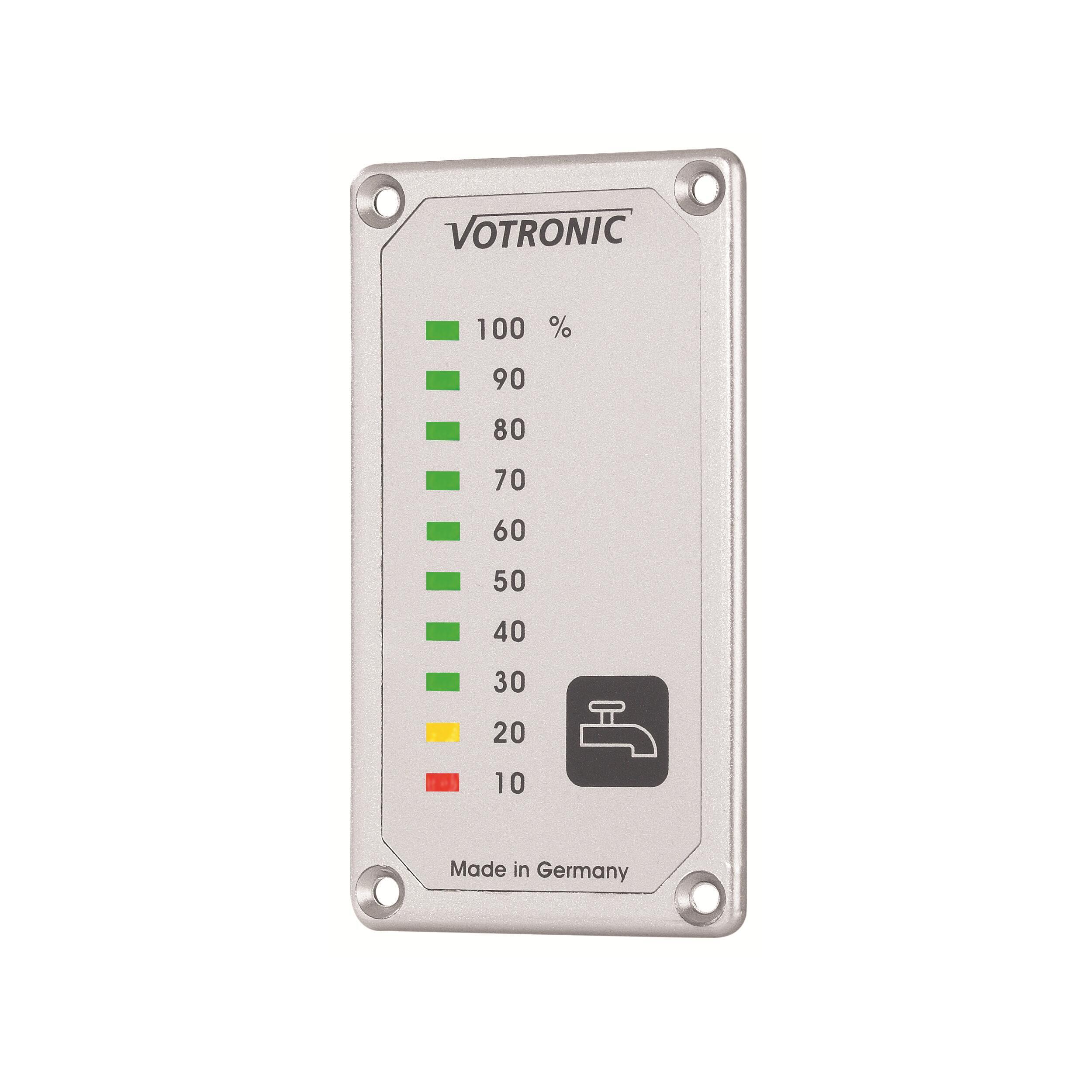 Jauge graduée 10 à 100%. Leds colorées. A utiliser avec les sondes Votronic.