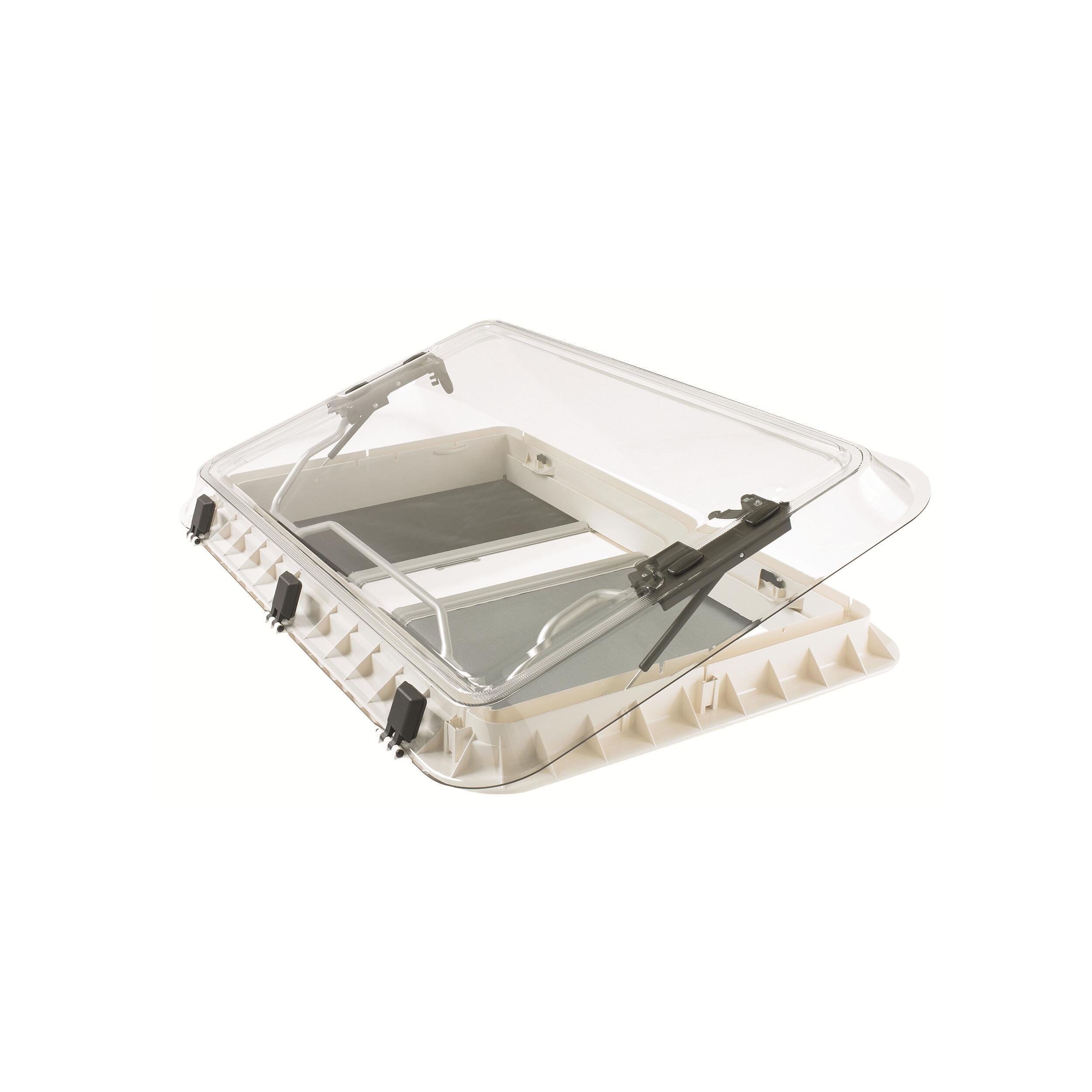 Dôme en verre acrylique double vitrage garantissant une excellente isolation thermique et phonique. Ouverture par barre de levage assistée par des vérins.