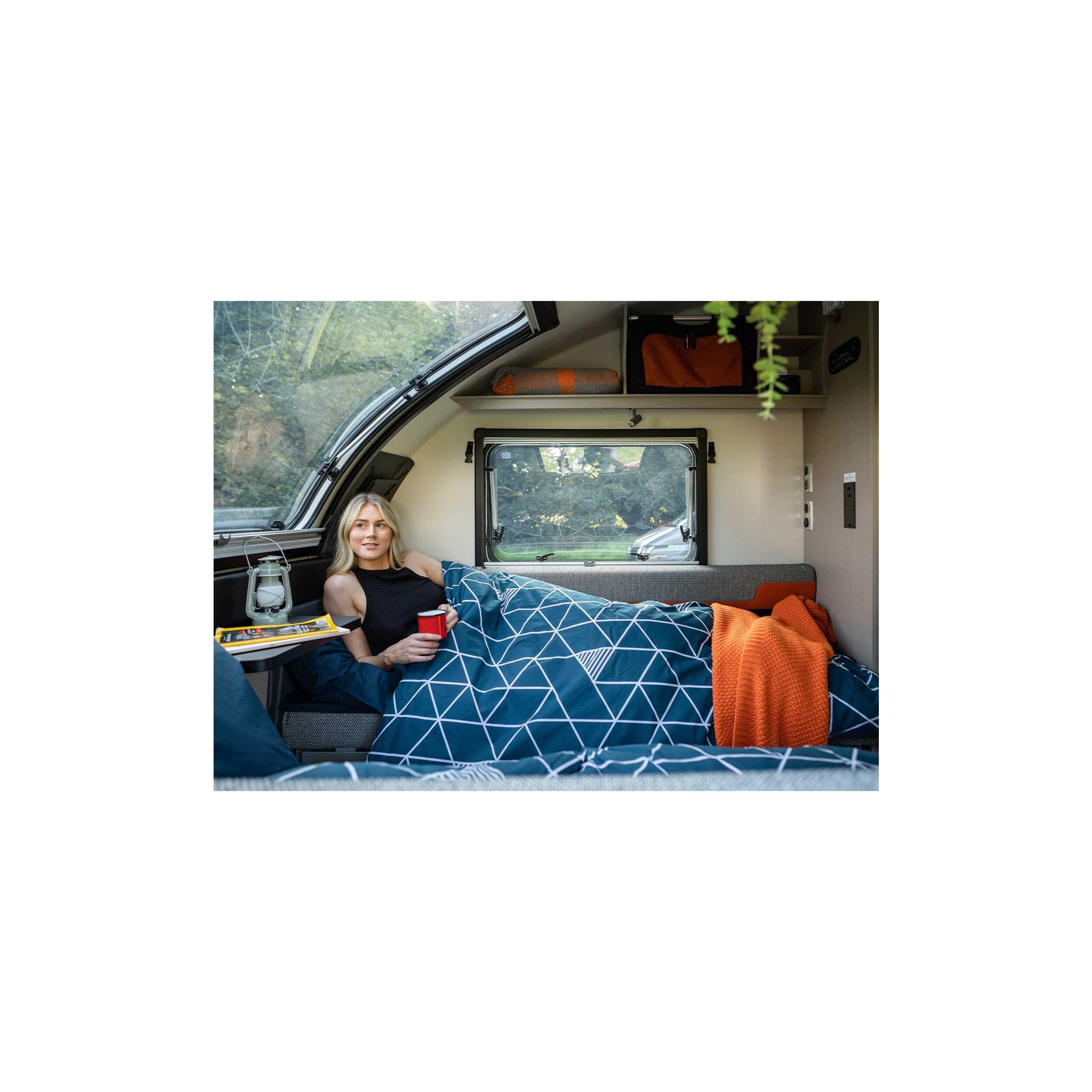 Faire son lit n’a jamais été aussi simple : il suffit de dérouler le couchage Duvalay et le tour est joué. Grâce à son design tout-en-un, il reste en place et s’adapte aussi bien aux lits simples qu’aux lits doubles (en utilisant deux unités). Une fois replié, il ne mesure que 29 cm de diamètre pour 66 cm de largeur, facilitant ainsi le rangement dans les espaces restreints de votre véhicule.