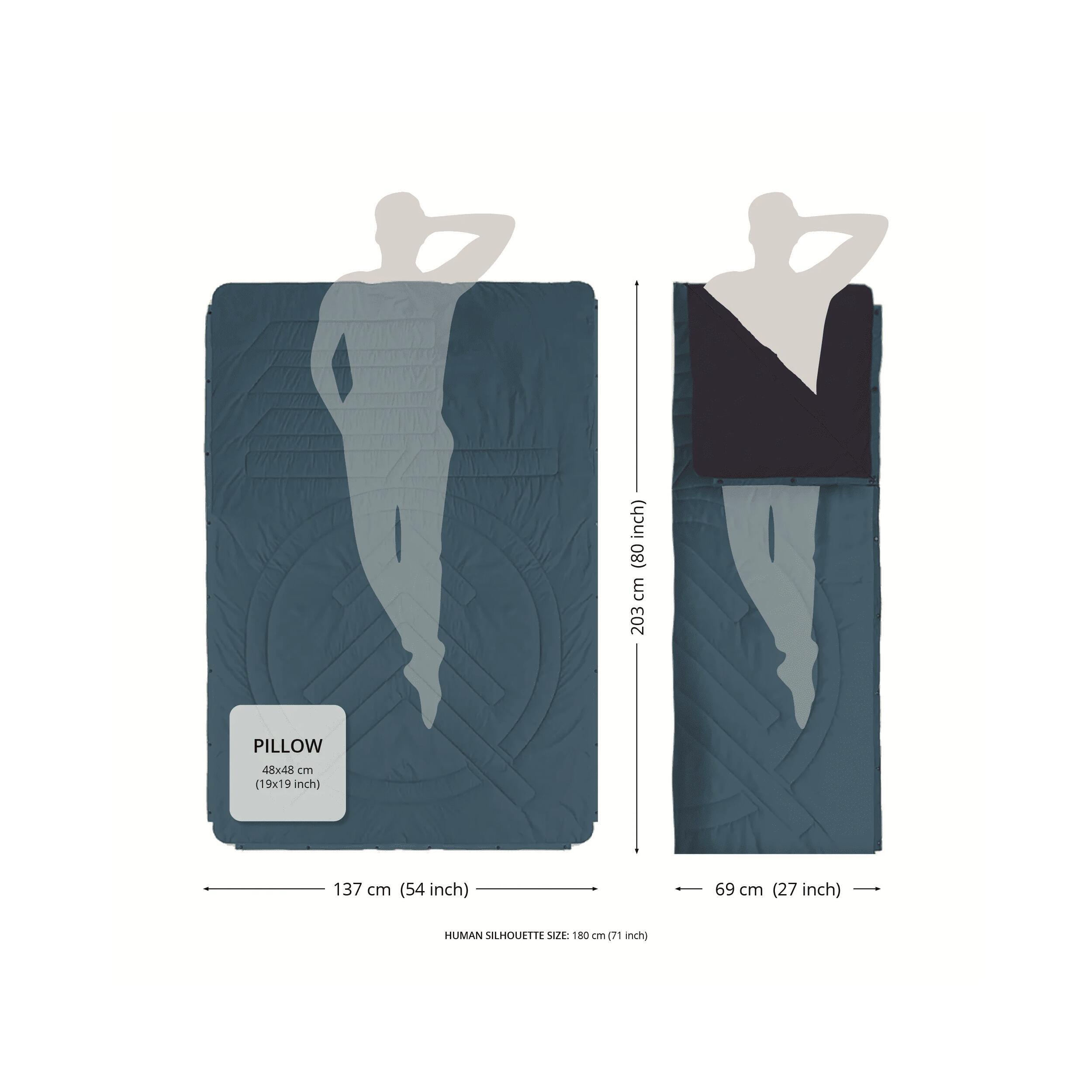 La couverture de camping Voited Cloudtouch, isolée, résistante à l'eau et aux tâches, se transforme en oreiller, sac de couchage ou cape imperméable.