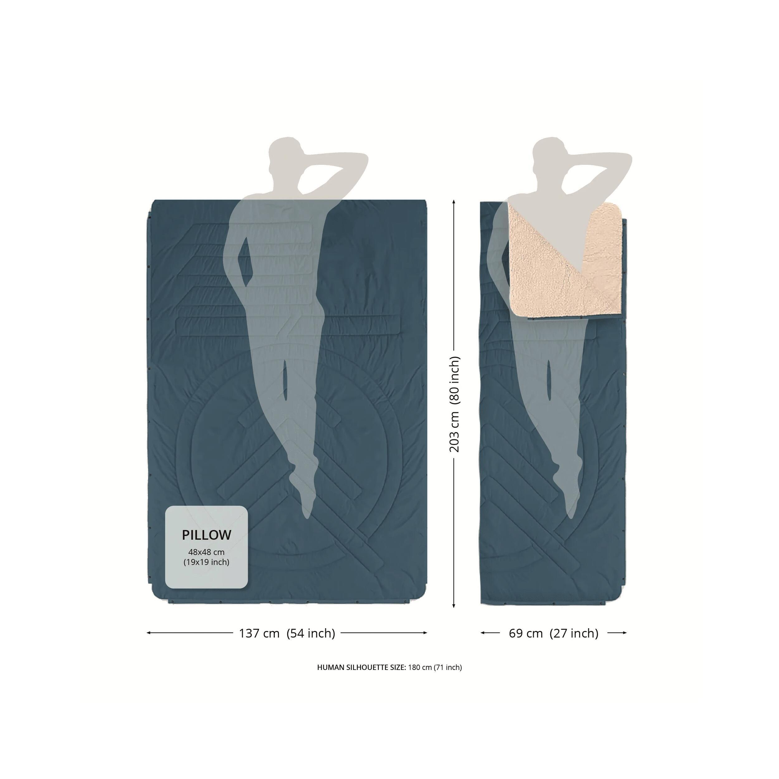 Avec ses dimensions généreuses de 137 x 203 cm, cette couverture vous enveloppera de chaleur lors de vos moments de détente. Transformée en oreiller compact de 38 x 38 x 10 cm, elle se glisse facilement dans votre sac à dos, sans encombre. Son poids léger de 1100 g la rend facile à transporter, vous permettant de l'emporter dans toutes vos aventures sans alourdir votre équipement.