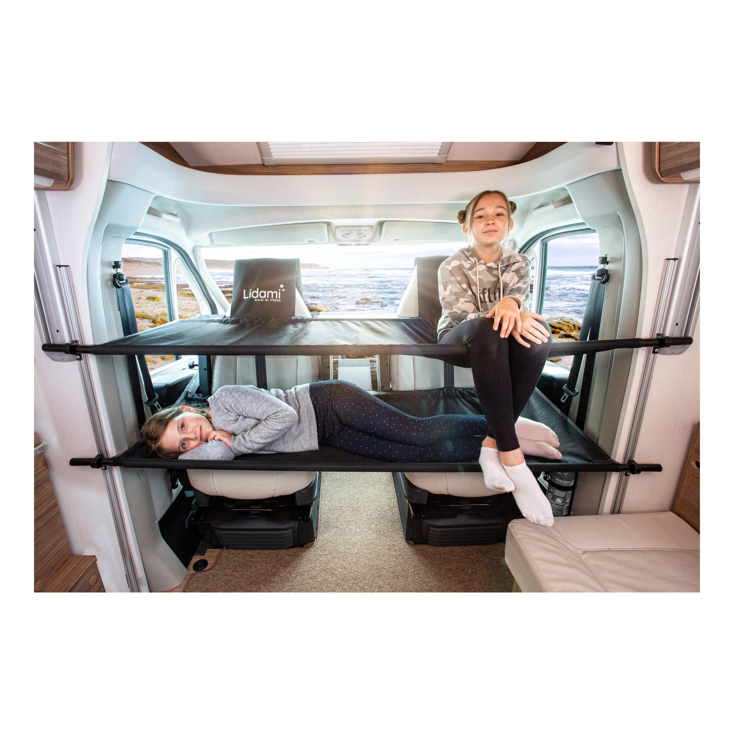Le lit de cabine Lidami est un concept innovant permetant d’installer un lit pour enfant sur les sièges avant d’un van ou d’un fourgon.