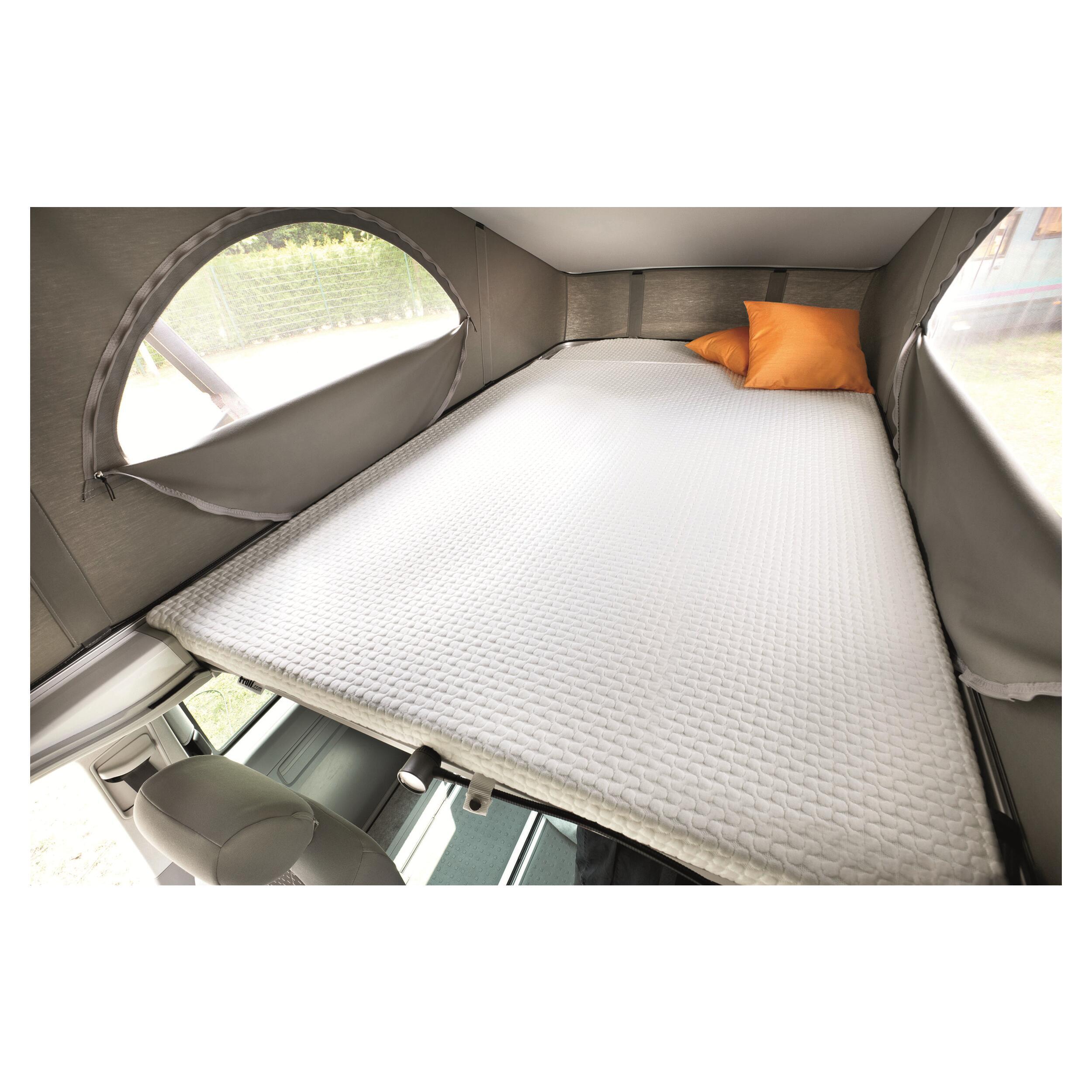 Matelas en 2 parties avec le pli d’ouverture du toit. Anti-acariens et anti-condensation. Mousse haute résilience HR 40/42 kg/m³. Housse : dessus tencel et AirMesh 3D en dessous pour la circulation de l’air. Enveloppe déhoussable et lavable à 60°.