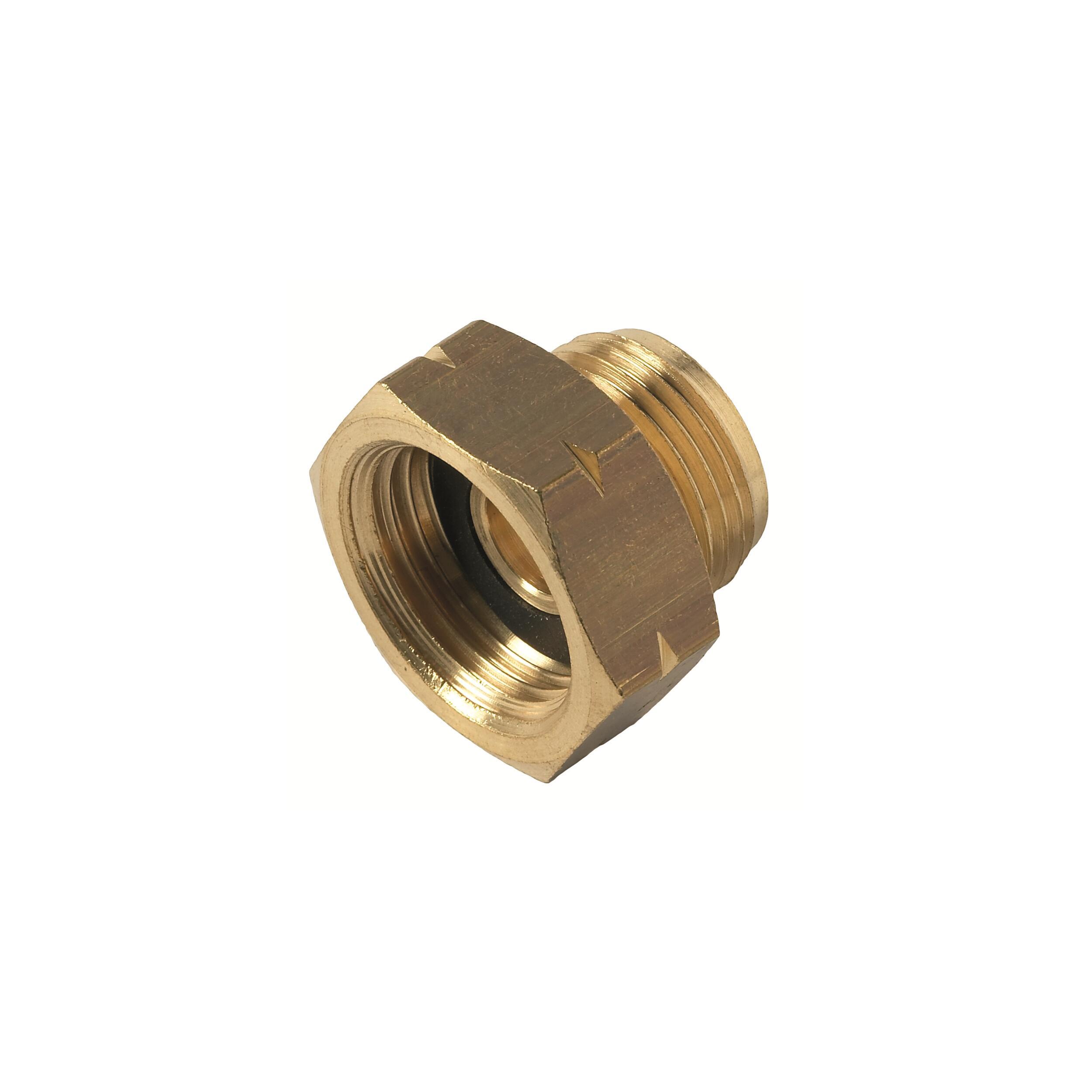 Écrou de conversion laiton : passez facilement d’un filetage bouteille femelle à un filetage mâle 20/150 pour vos installations gaz en camping-car.