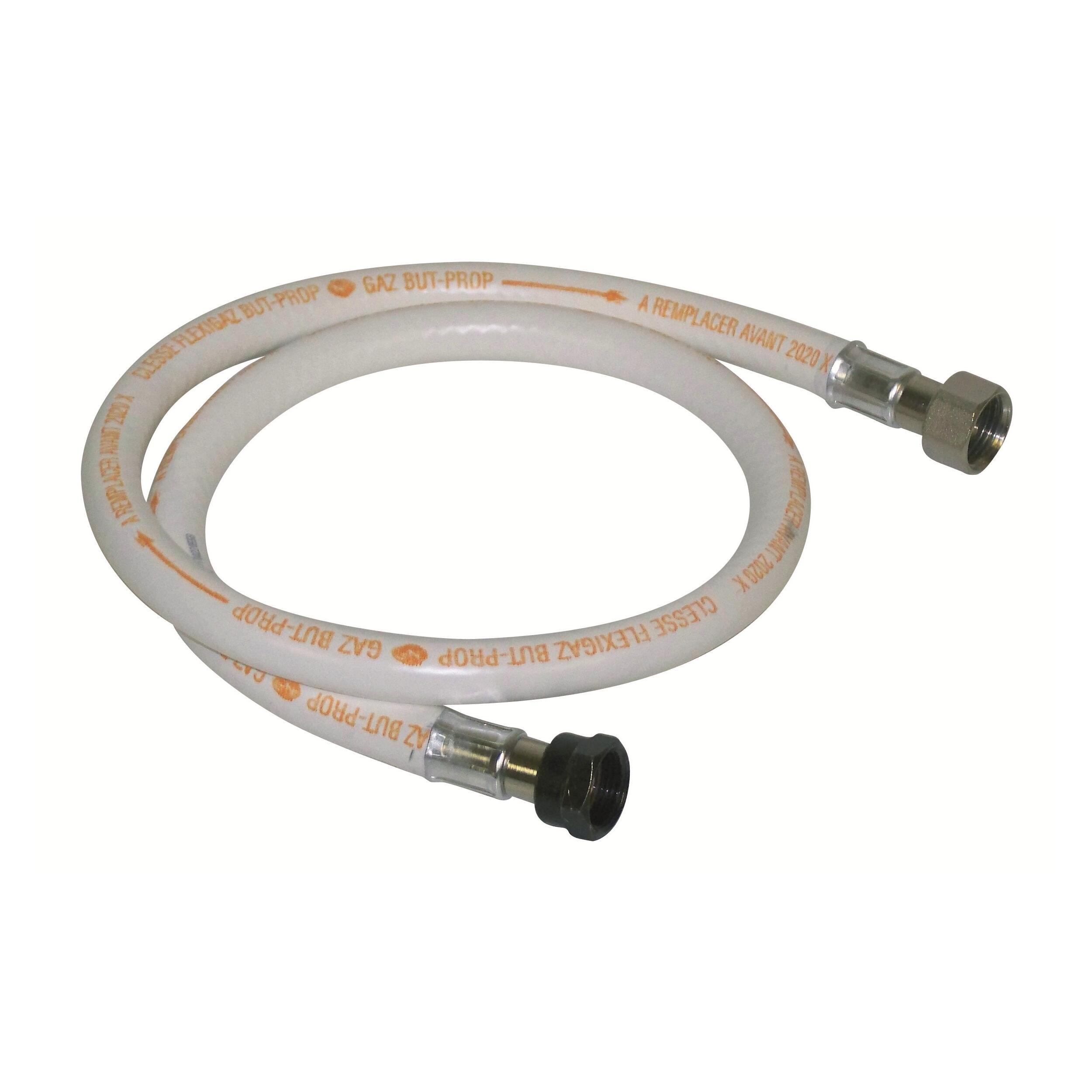 Flexible basse pression Favex, durée de vie de 10 ans, pour connexion sécurisée entre bouteille de gaz et détendeur. Entrée G2, sortie G 1/2 15/21.