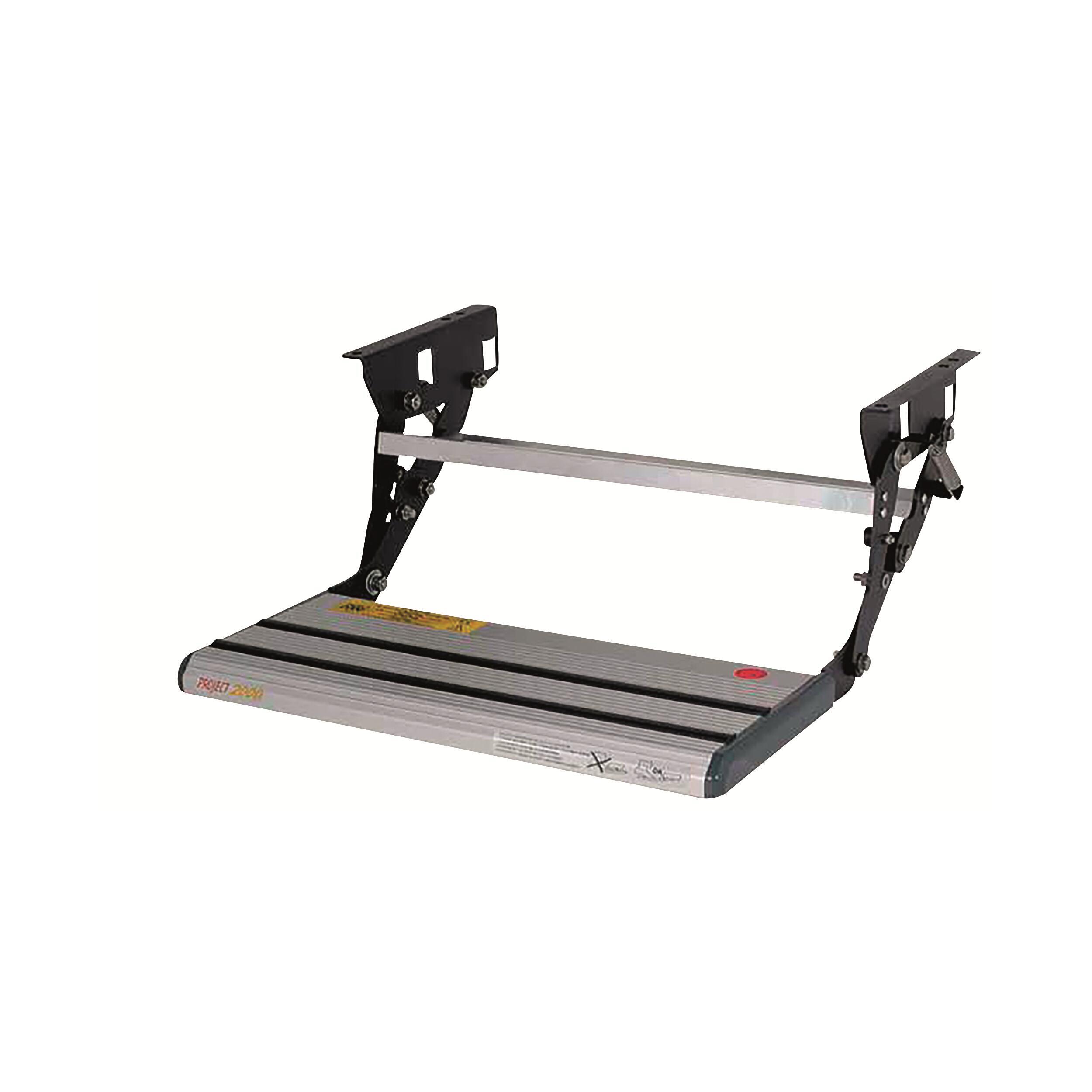 Structure en acier et aluminium. Marche avec bandes antidérapantes. Capteur pour voyant de signalisation de marche intégré.