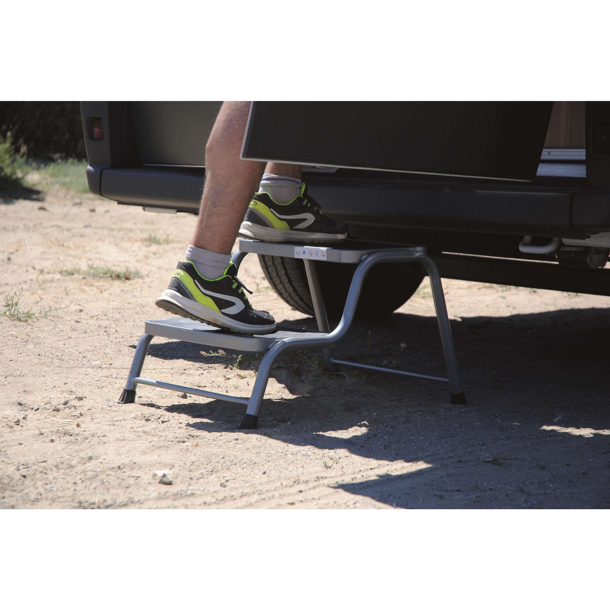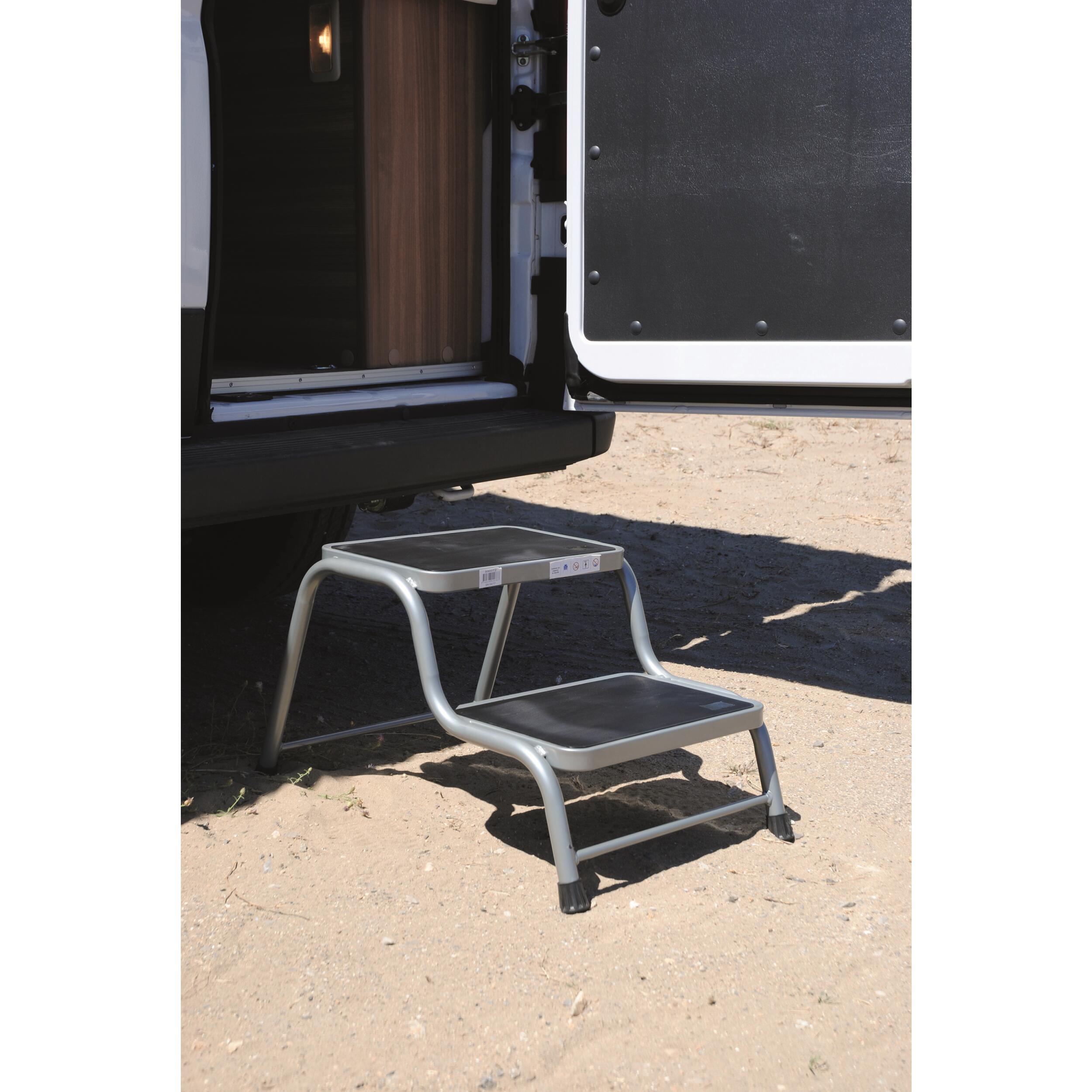 Le marchepied double Estoril est destiné à faciliter la montée et la descente des véhicules de loisirs. Il est adapté à une utilisation avec un camping-car, une caravane ou un fourgon.