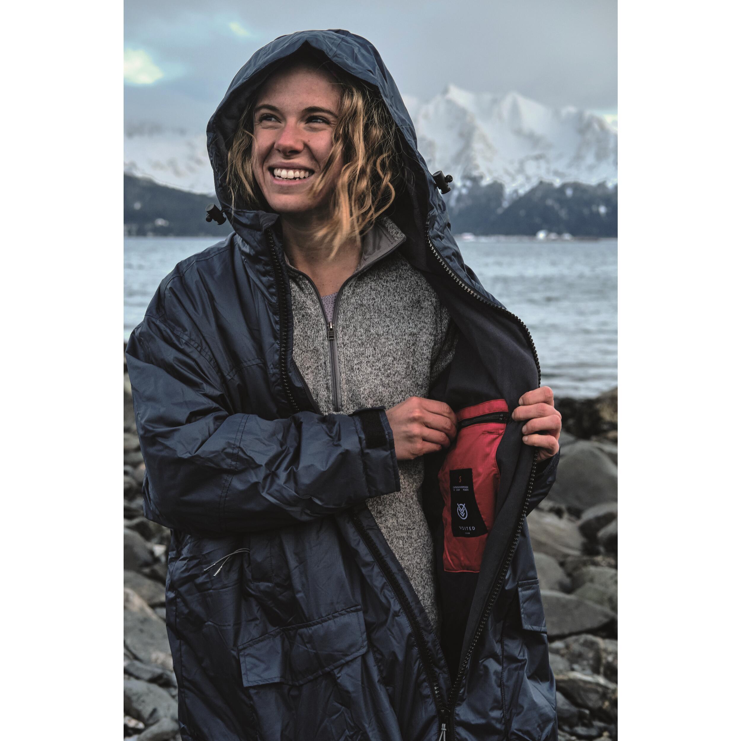Le design surdimensionné du corps et des bras facilite le changement de tenue en toute discrétion et permet de porter le manteau par-dessus une combinaison de plongée, offrant ainsi une couche supplémentaire de protection. Pour un ajustement plus serré, optez pour une taille en dessous.