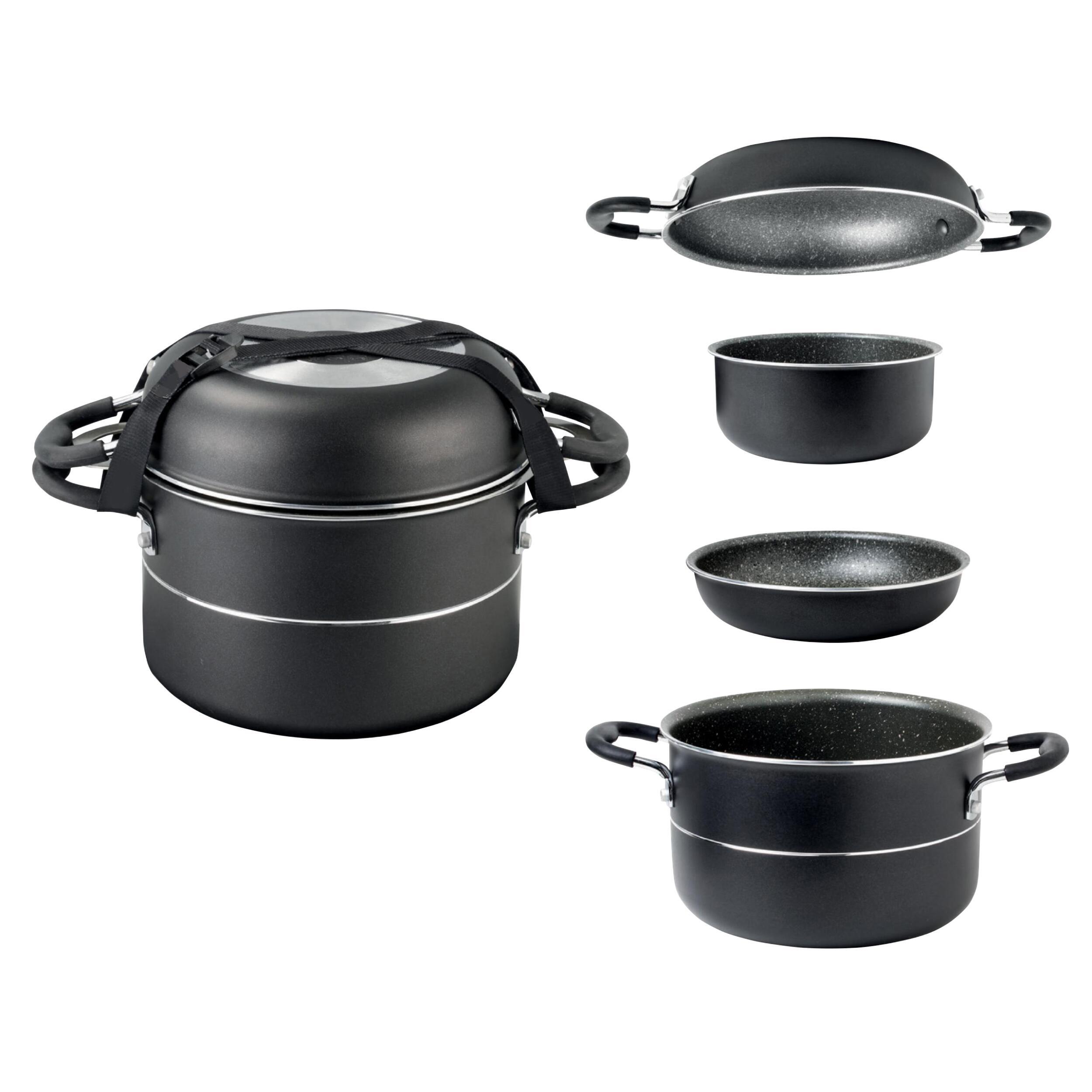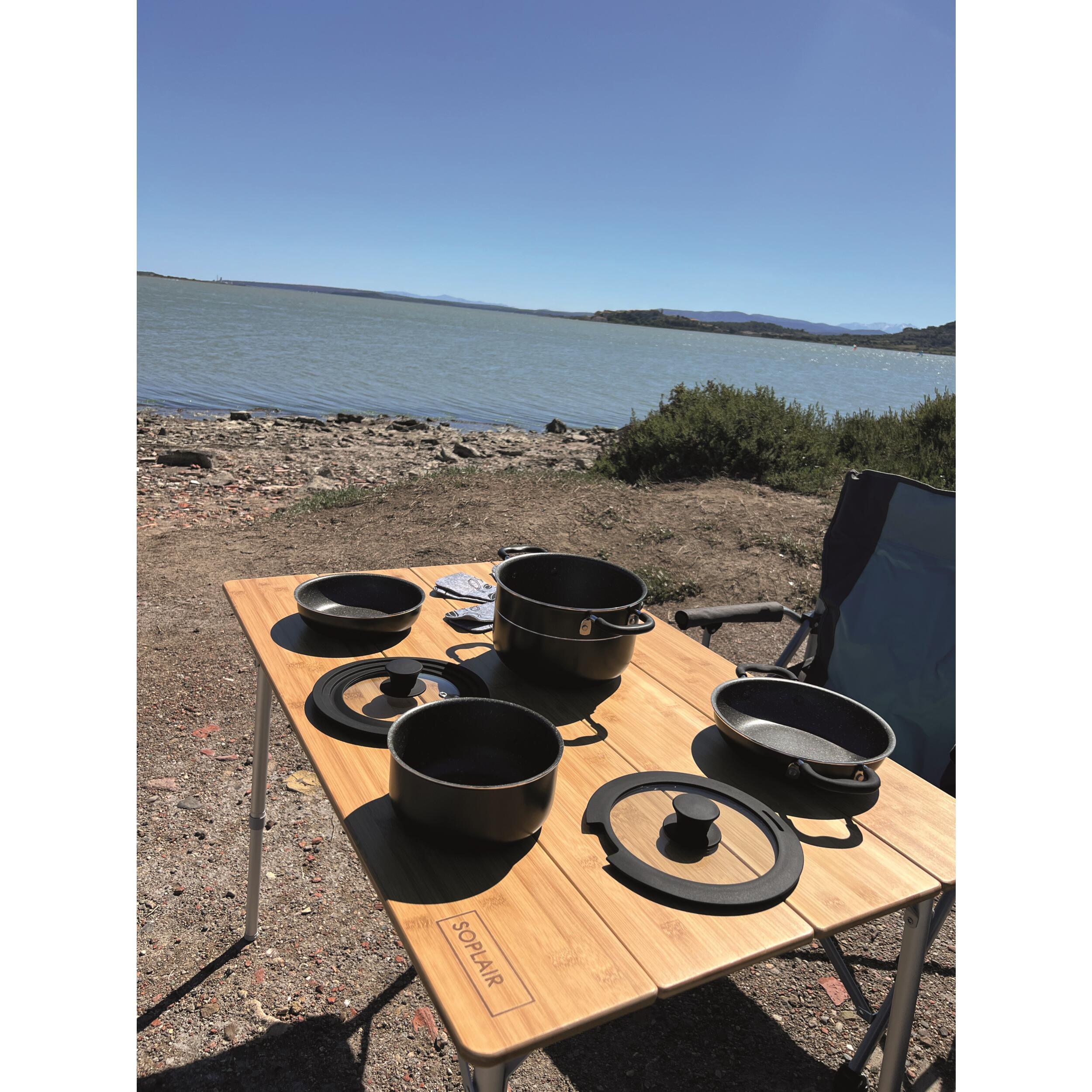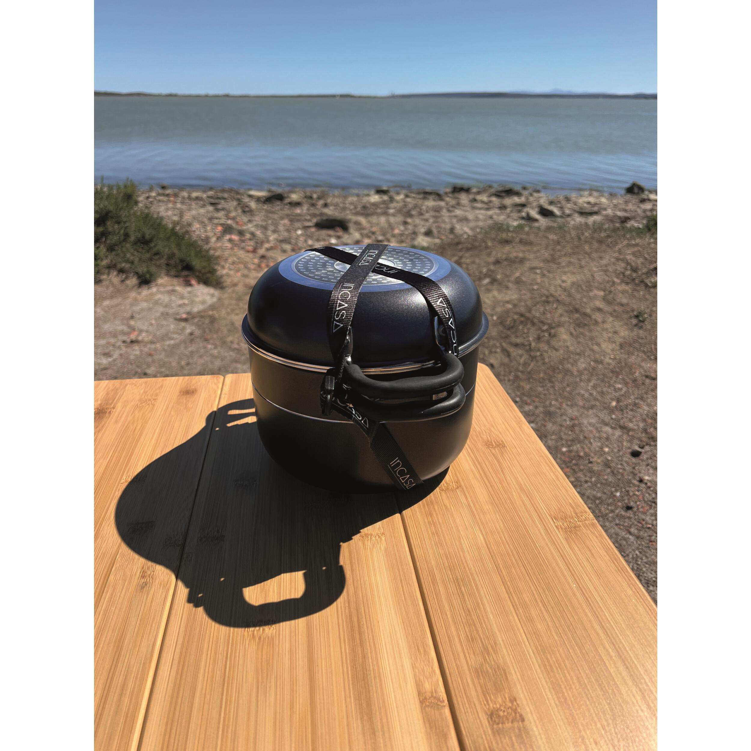 Cette popote conçue en aluminium en revêtement anti-adhésif est ultra compacte, légère et portable, donc idéale pour les activités de plein air comme le camping, la randonnée, le trekking, le vélo et autres.
