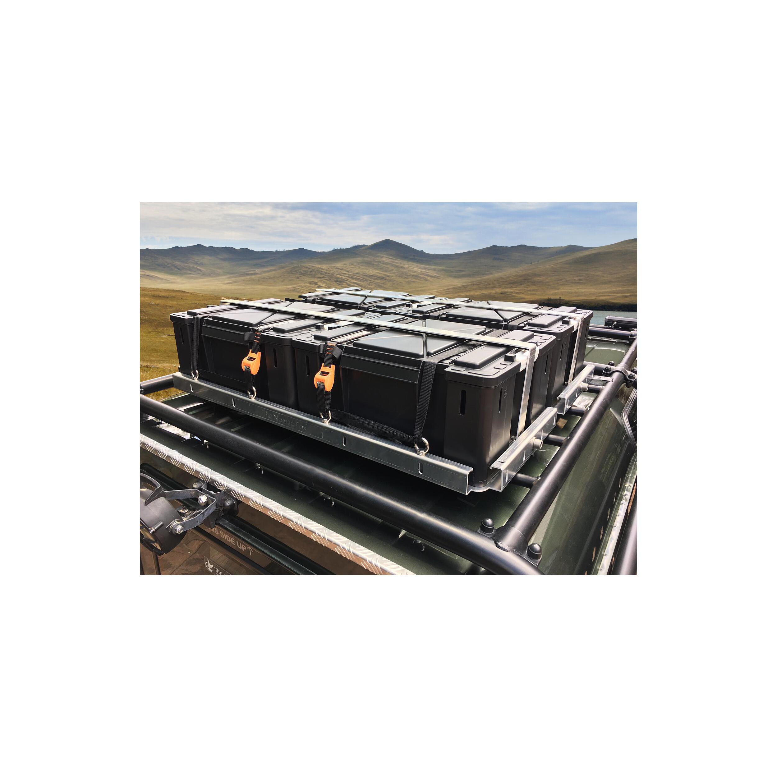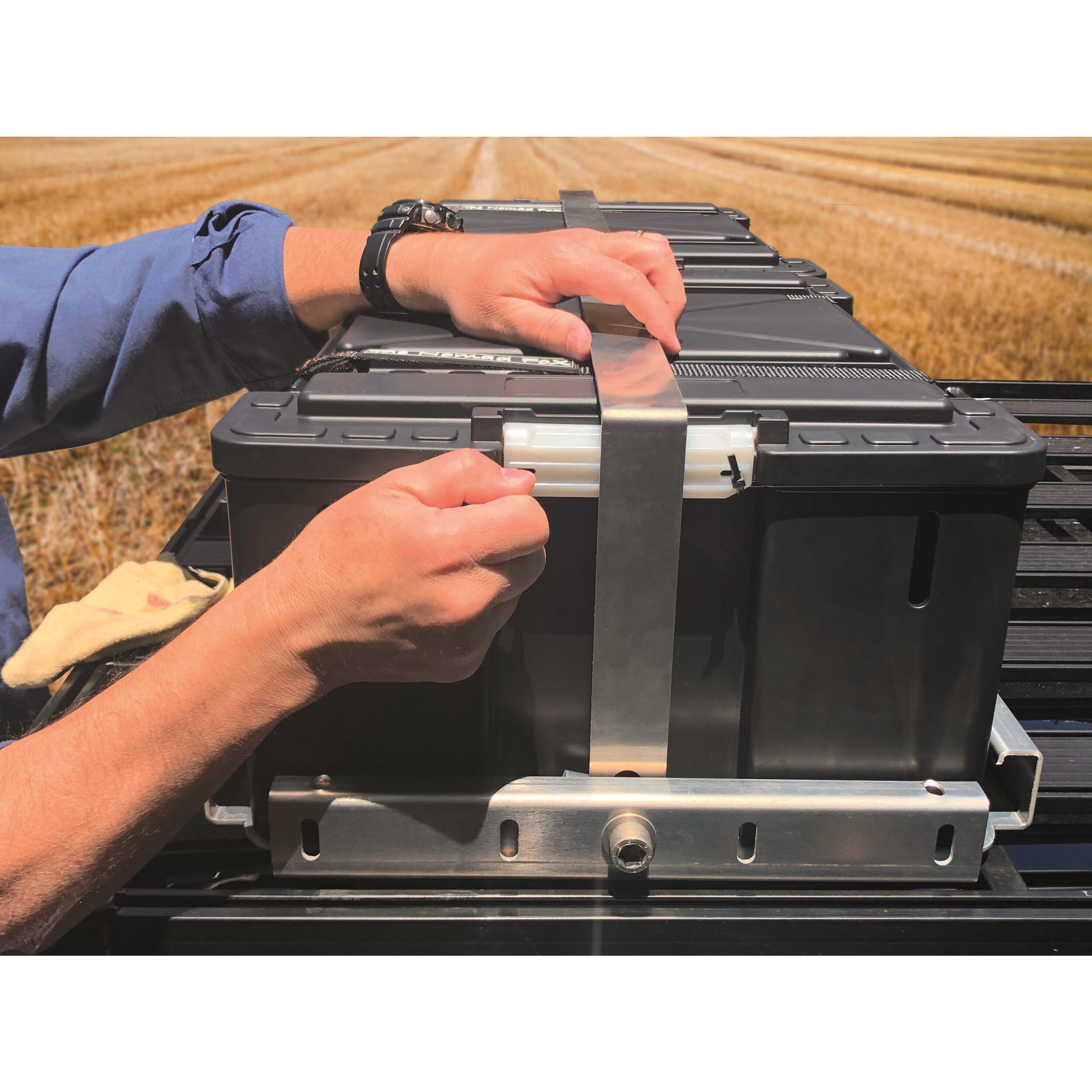 Les caisses peuvent être placées aussi bien à l’intérieur du véhicule que sur le toit, notamment grâce aux 2 rails sur le couvercle qui assurent un parfait arrimage par des sangles.