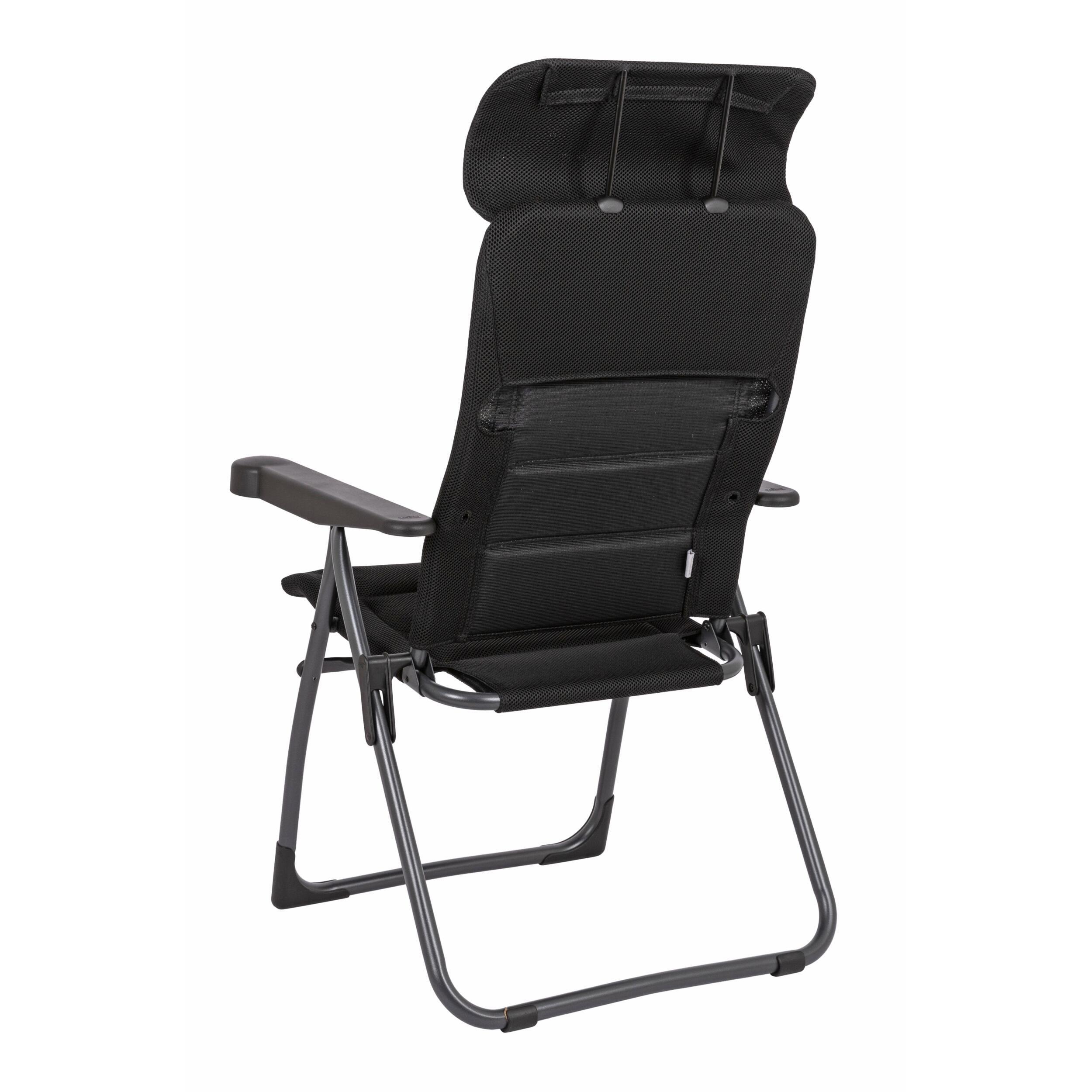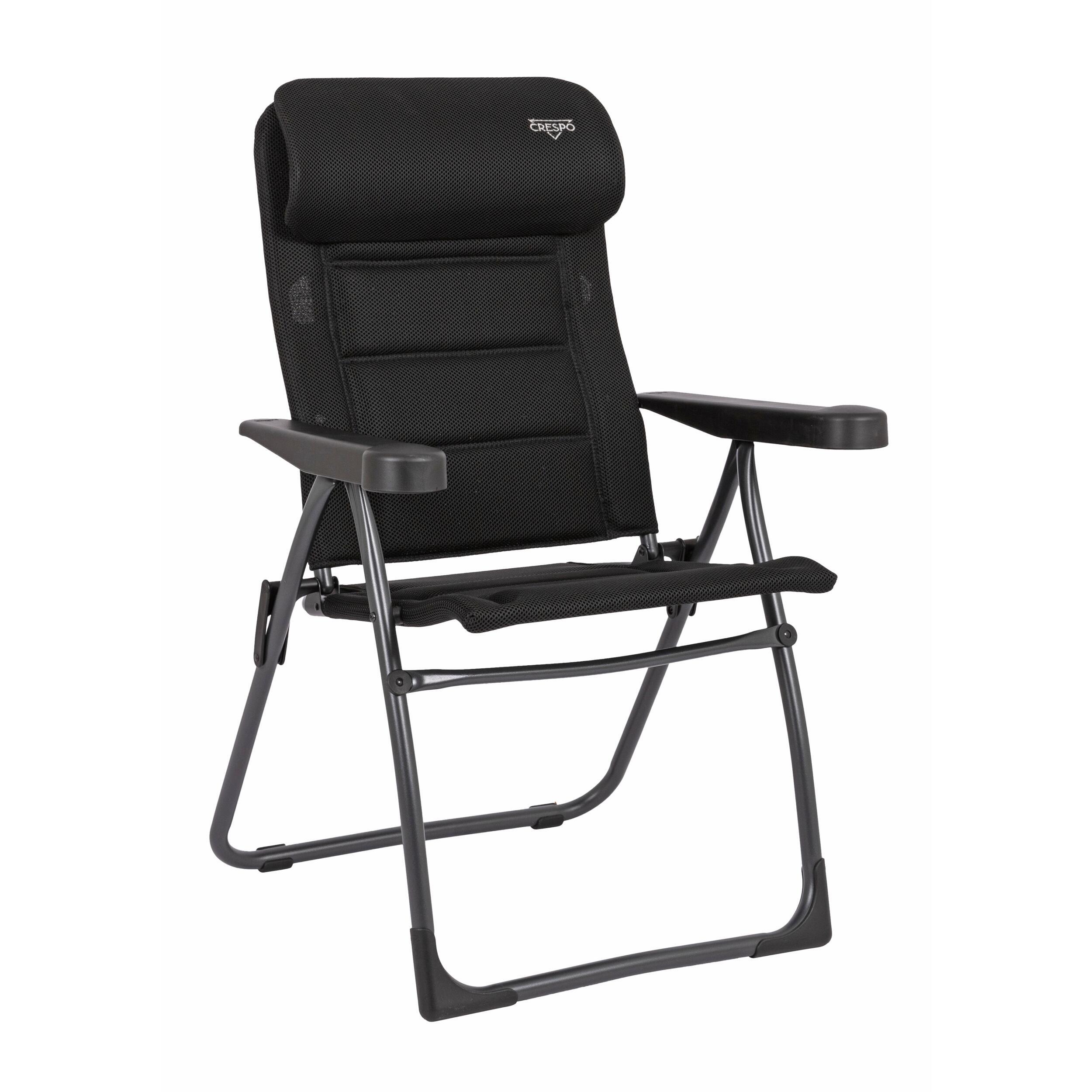 Fauteuil pliant compact Crespo Air Deluxe XS avec appui-tête réglable, structure aluminium légère et tissu respirant.