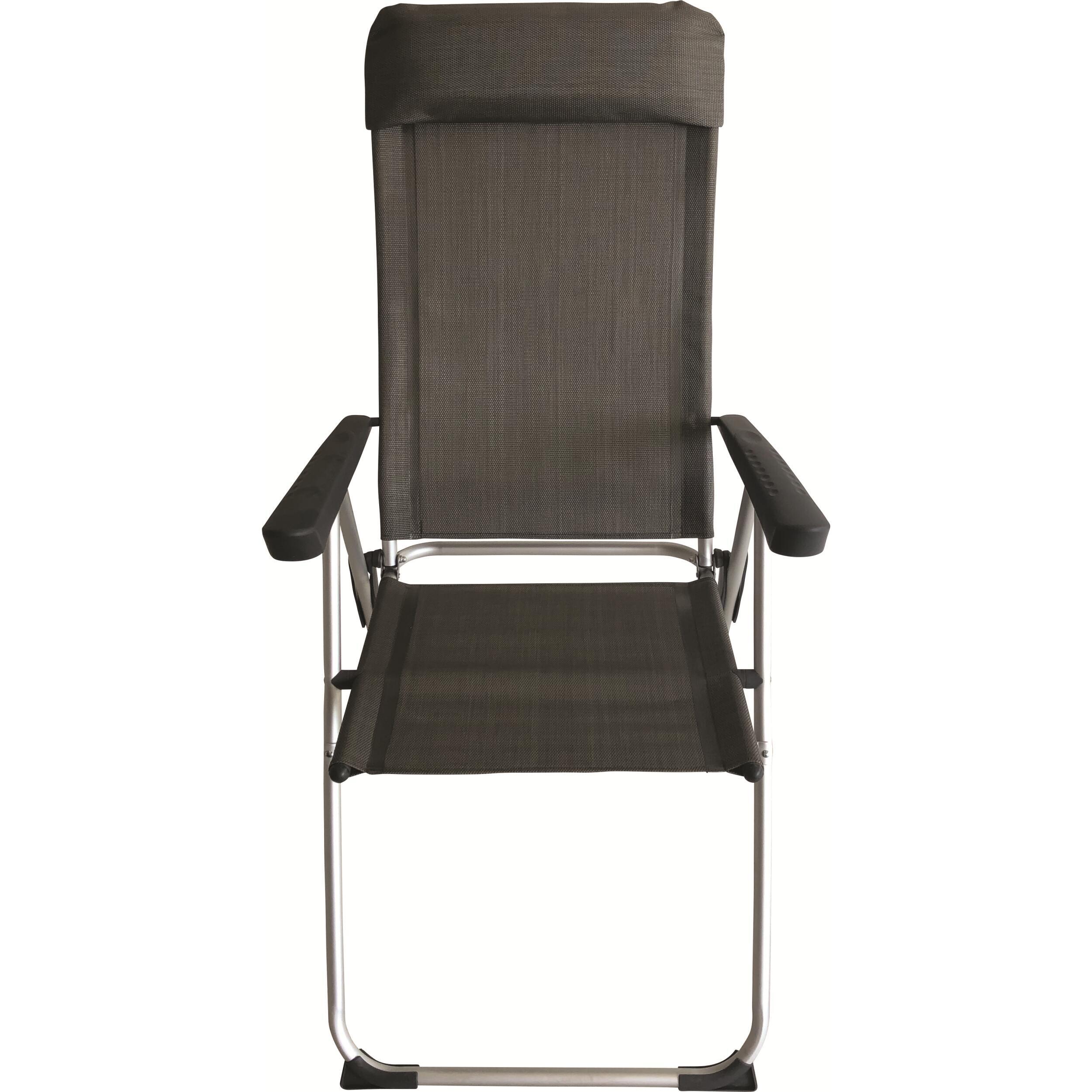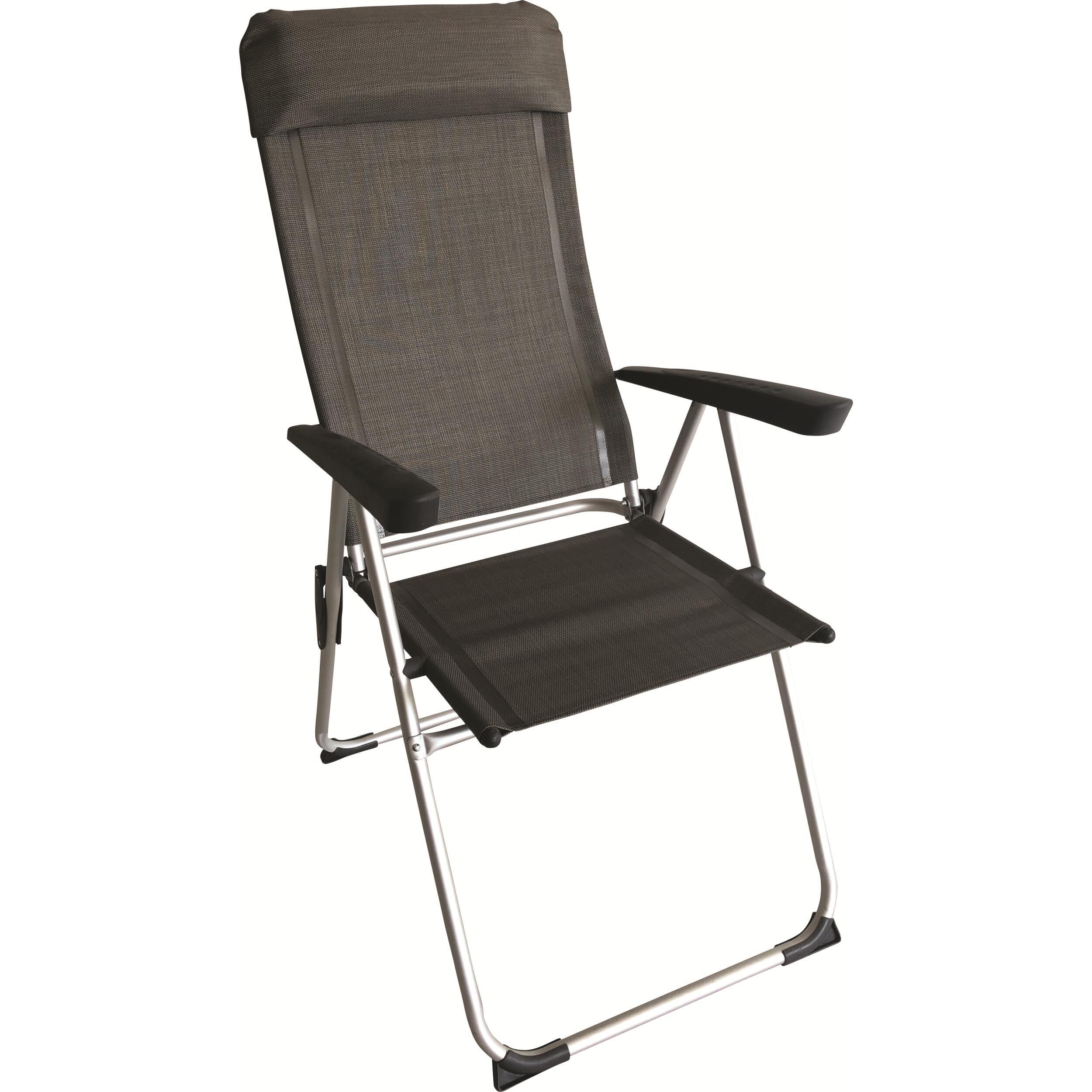 Fauteuil pliant Eco Plus BAYASUN en toile textilène, 5 positions, léger et confortable, avec appuie-tête amovible et armature en aluminium. Idéal pour le camping ou les pauses nomades.