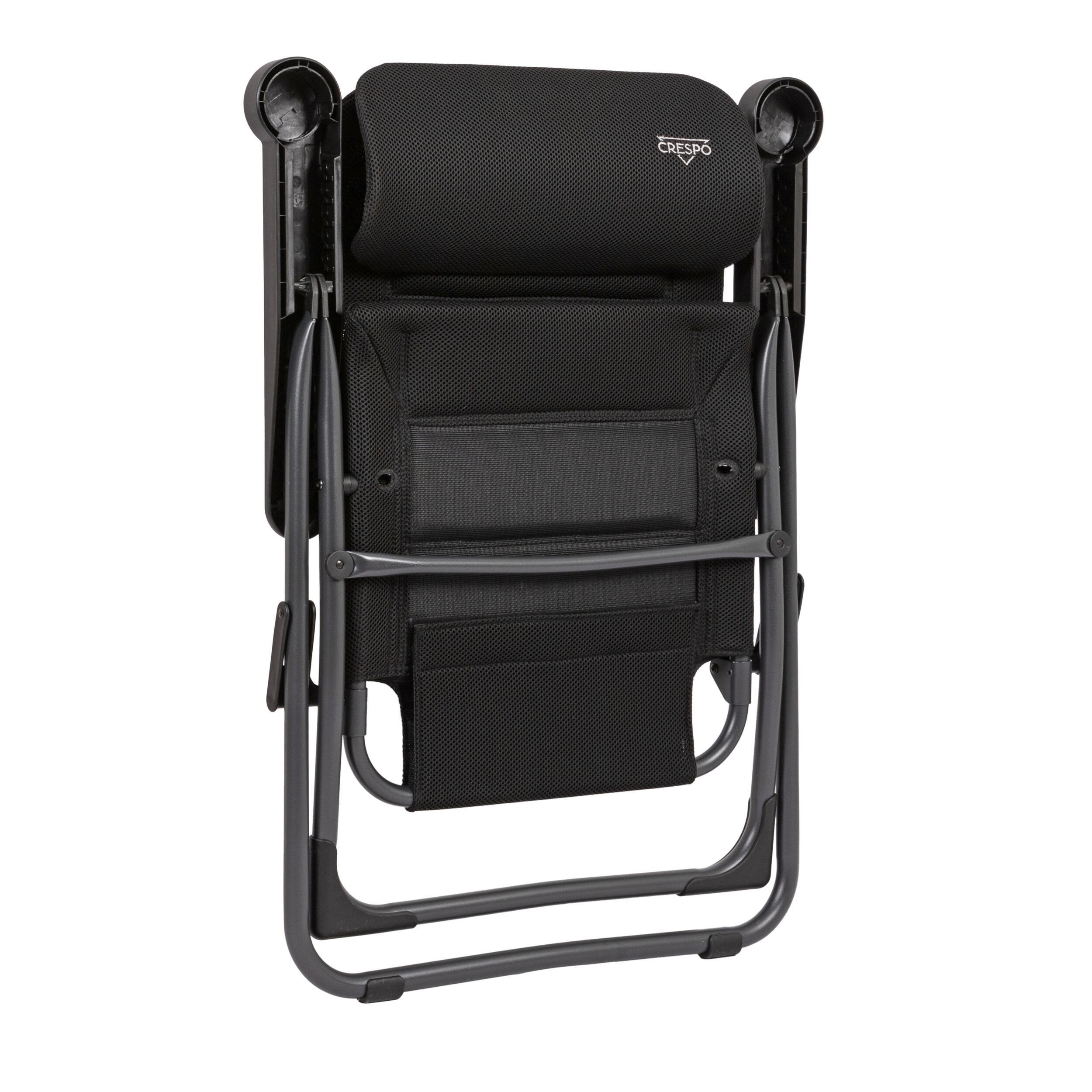 Fauteuil de camping compact et ergonomique Crespo Air Deluxe XS avec appui-tête ajustable, dossier inclinable et tissu respirant.