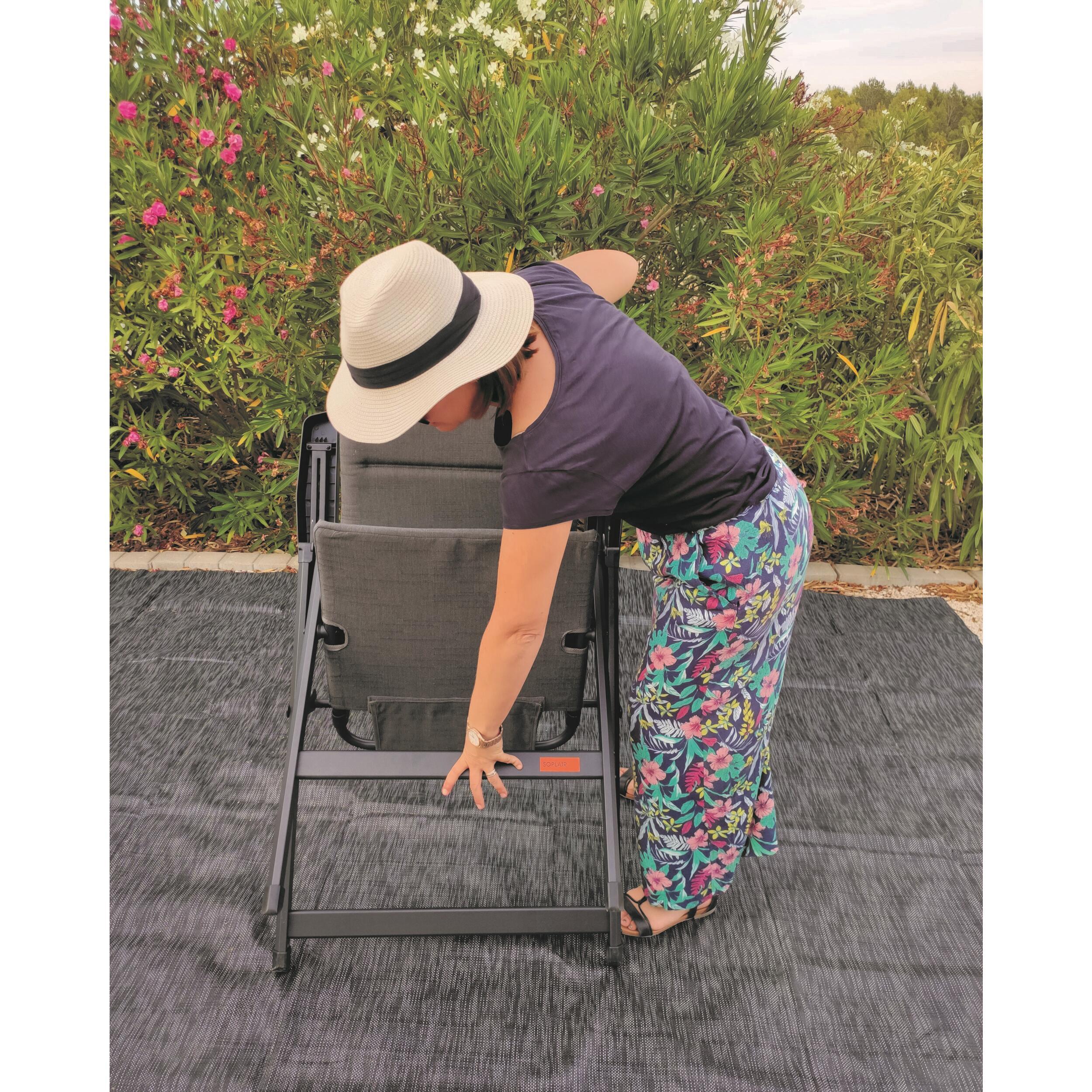 La structure en aluminium de couleur noire met en valeur le gris sombre de la toile Alltec.