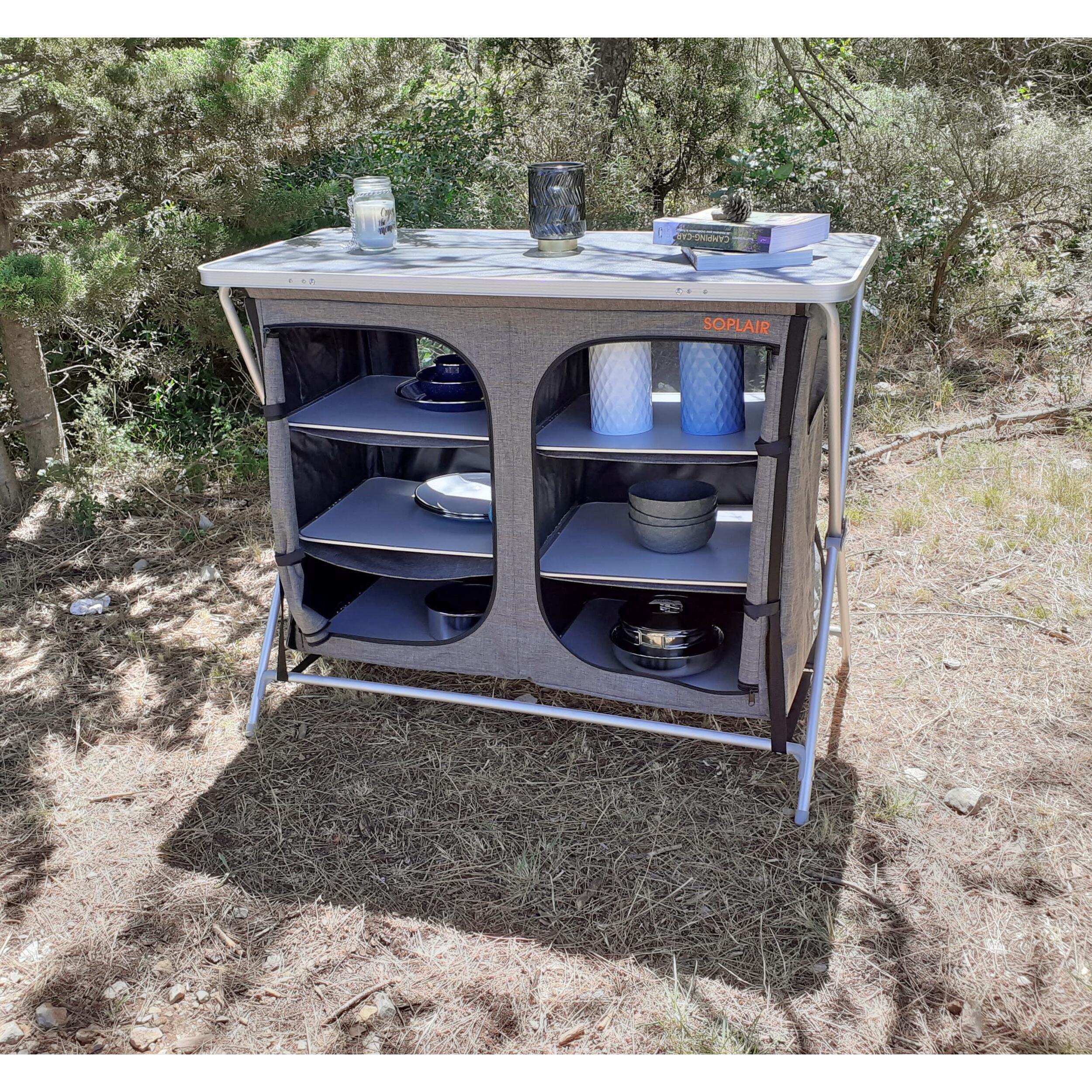 Meuble de rangement SOPLAIR, pratique, léger et robuste, avec 3 ou 6 étagères pour organiser vos affaires à l’abri et en toute simplicité lors de vos escapades.