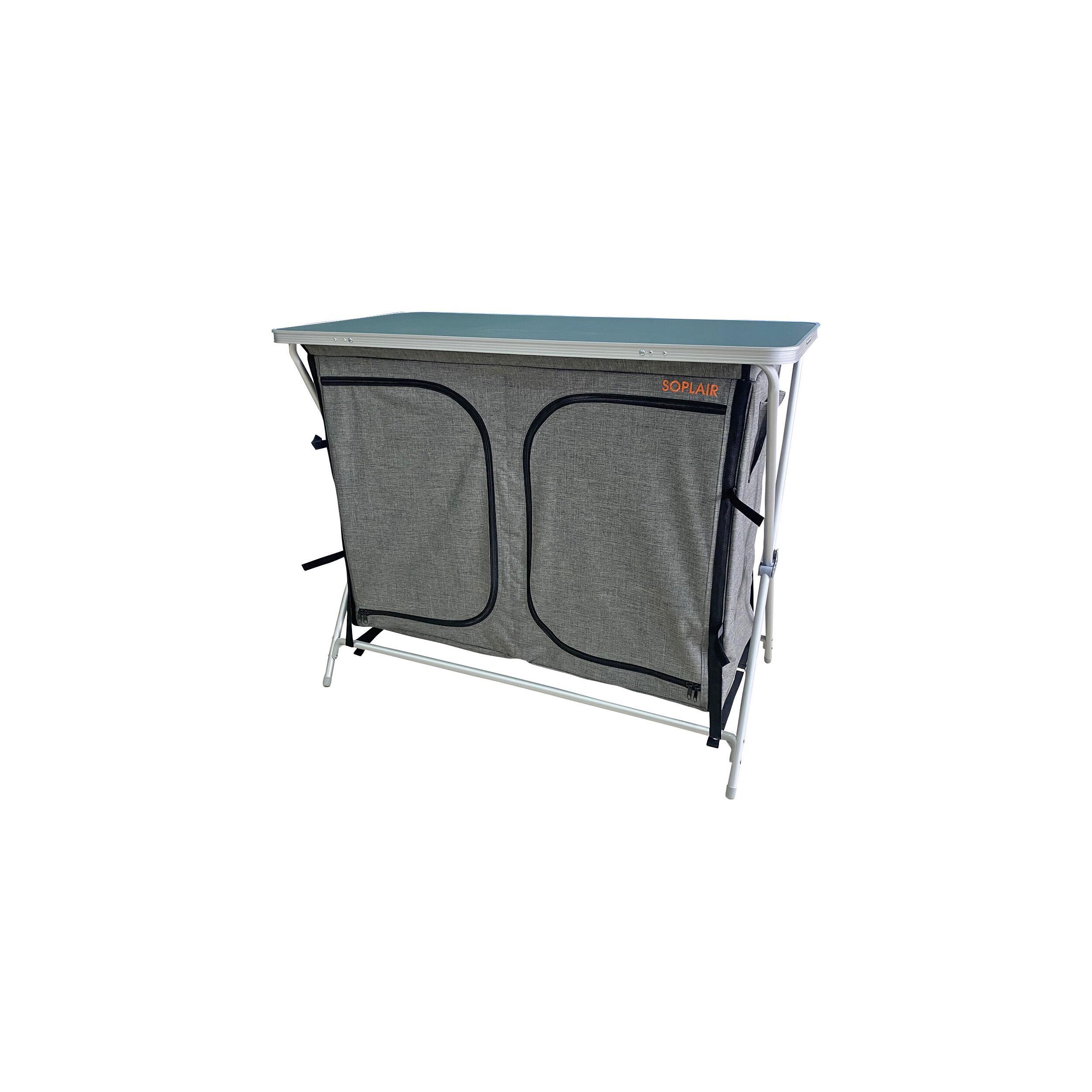 Avec sa structure en aluminium, ce meuble allie légèreté et robustesse. Résistant aux conditions extérieures, il peut parfaitement rester installé sur votre emplacement pendant toute la durée de votre séjour. Aucun besoin de le démonter entre deux journées d’excursion ! Que vous soyez au bord d’un lac, en pleine nature ou dans un camping, vos affaires sont parfaitement protégées et restent accessibles à tout moment.