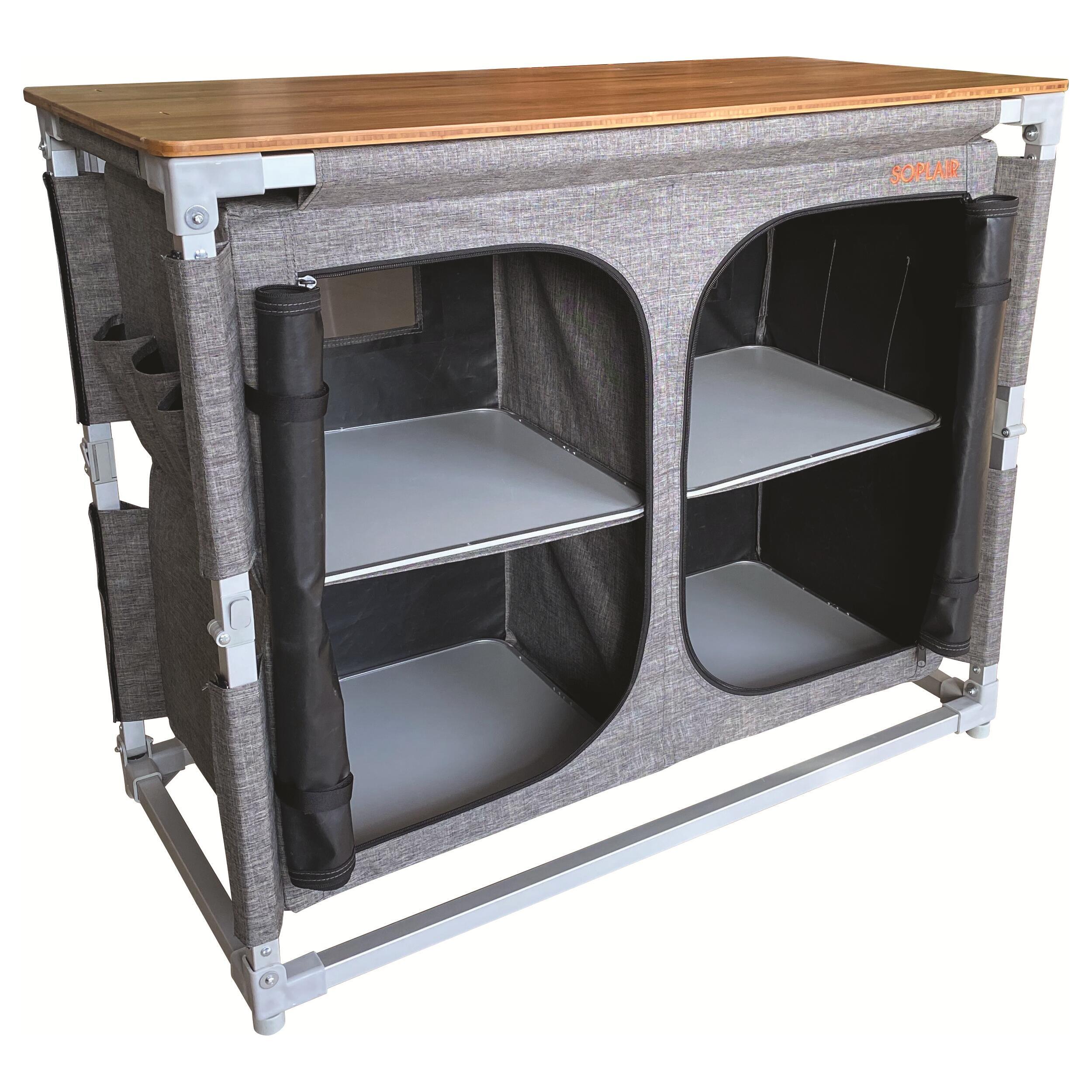 Meuble de rangement avec plateau en bambou naturel parfait pour le camping. Ultra…