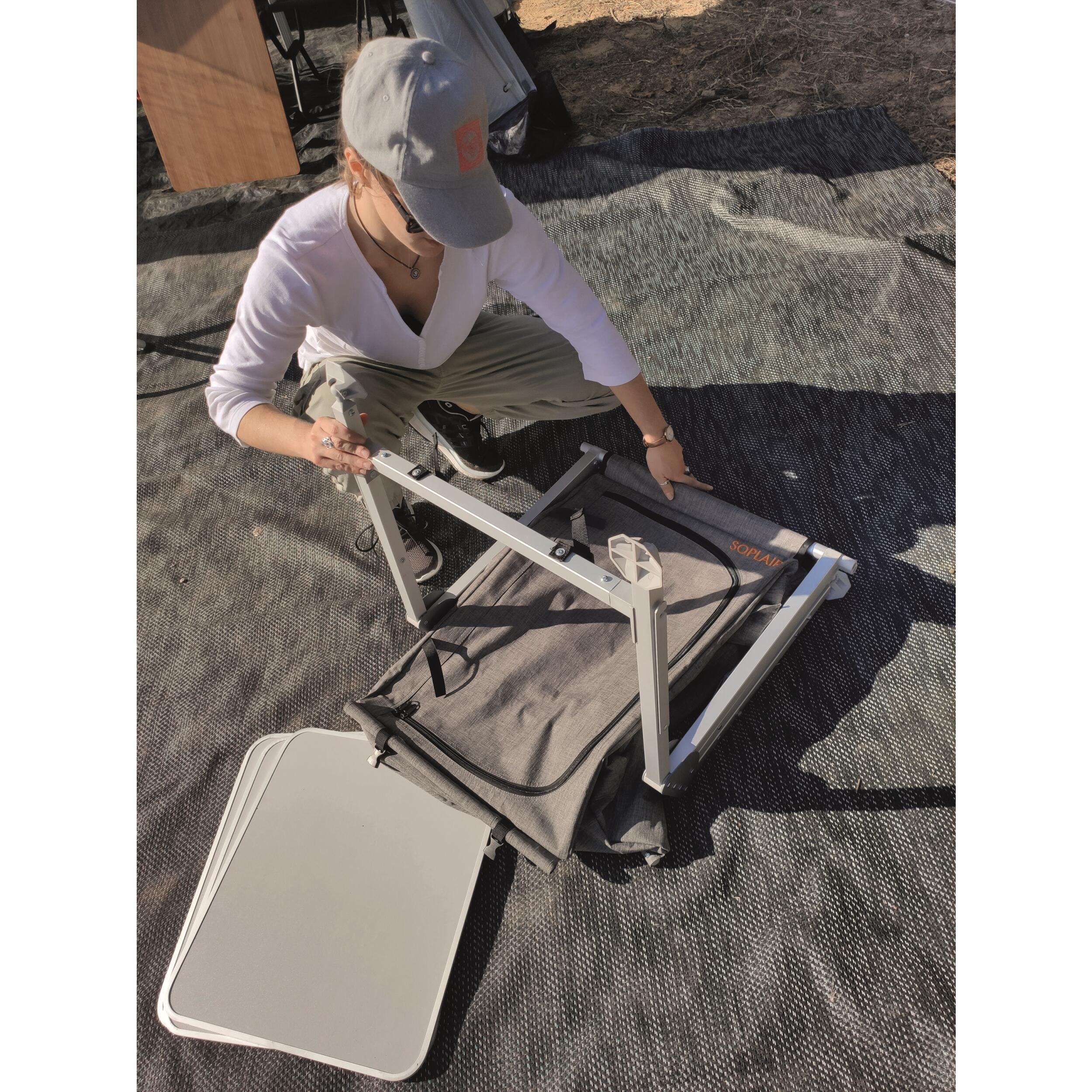 Meuble de rangement avec plateau en bambou naturel et armature pliante en aluminium.…