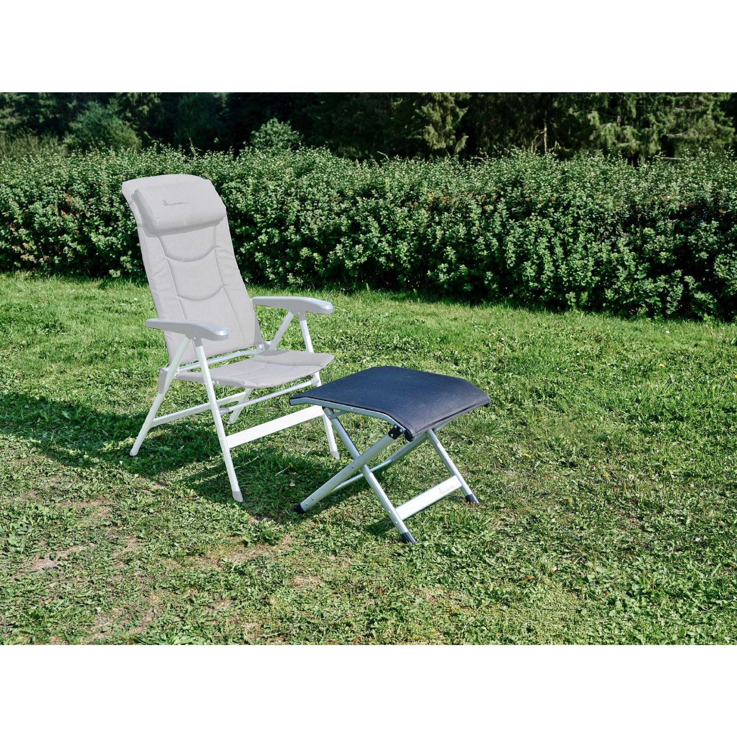L’assise du repose-pieds est recouverte de polyester résistant avec revêtement en PVC. Ce matériau robuste est parfaitement adapté à une utilisation en extérieur, car il résiste à l’humidité et aux salissures. Le léger rembourrage en mousse assure une surface douce et agréable, augmentant le confort même lors d’utilisations prolongées.