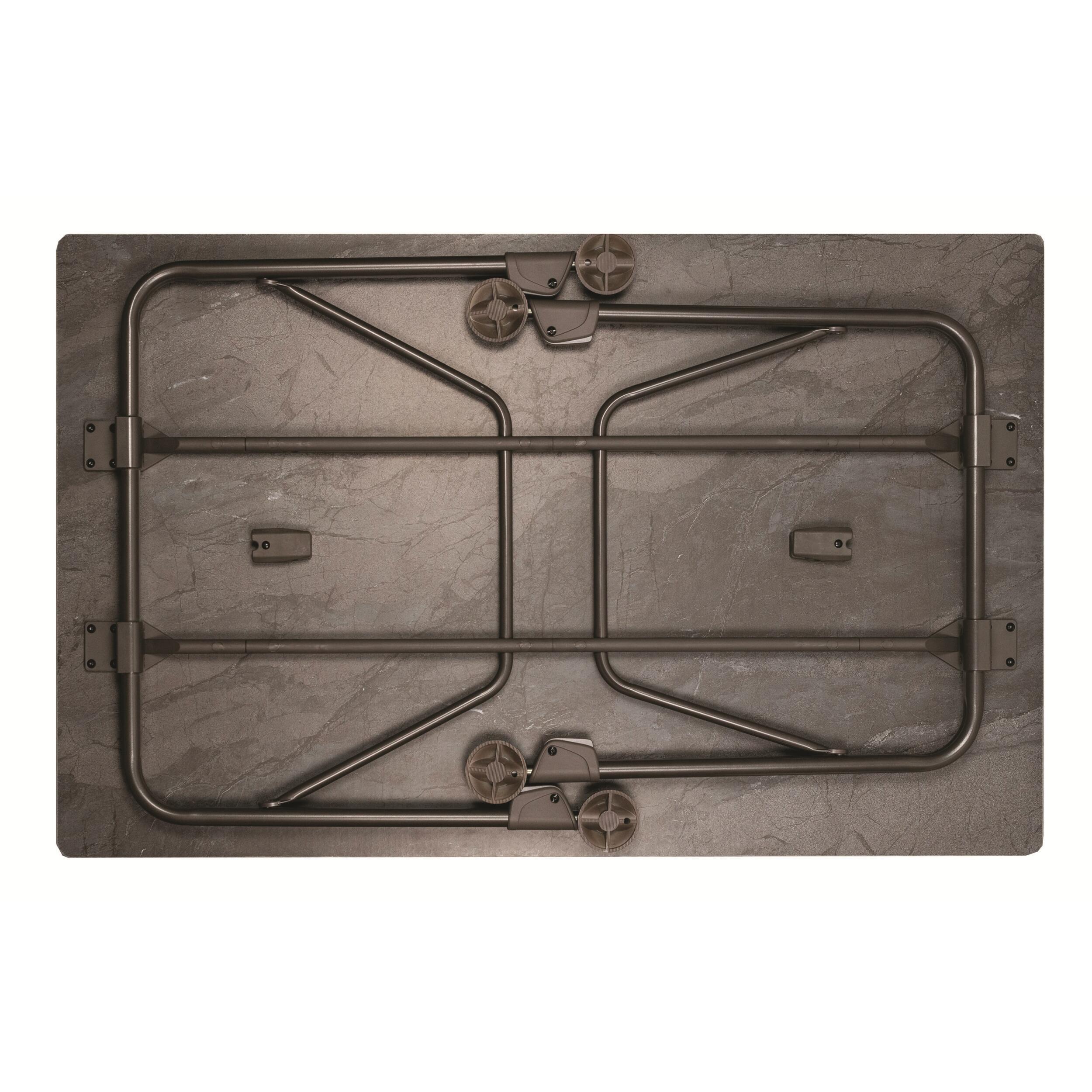 Table ultra légère grâce à son plateau tout en résine. Il reste frais même pendant les chaudes journées d'été. Armature en Duralite à réglage semi-automatique. Ses 4 pieds réglables sont équipés du système FastFix Automatic. La table peut être réglée très facilement en hauteur. Résistante contre les UV et les intempéries.