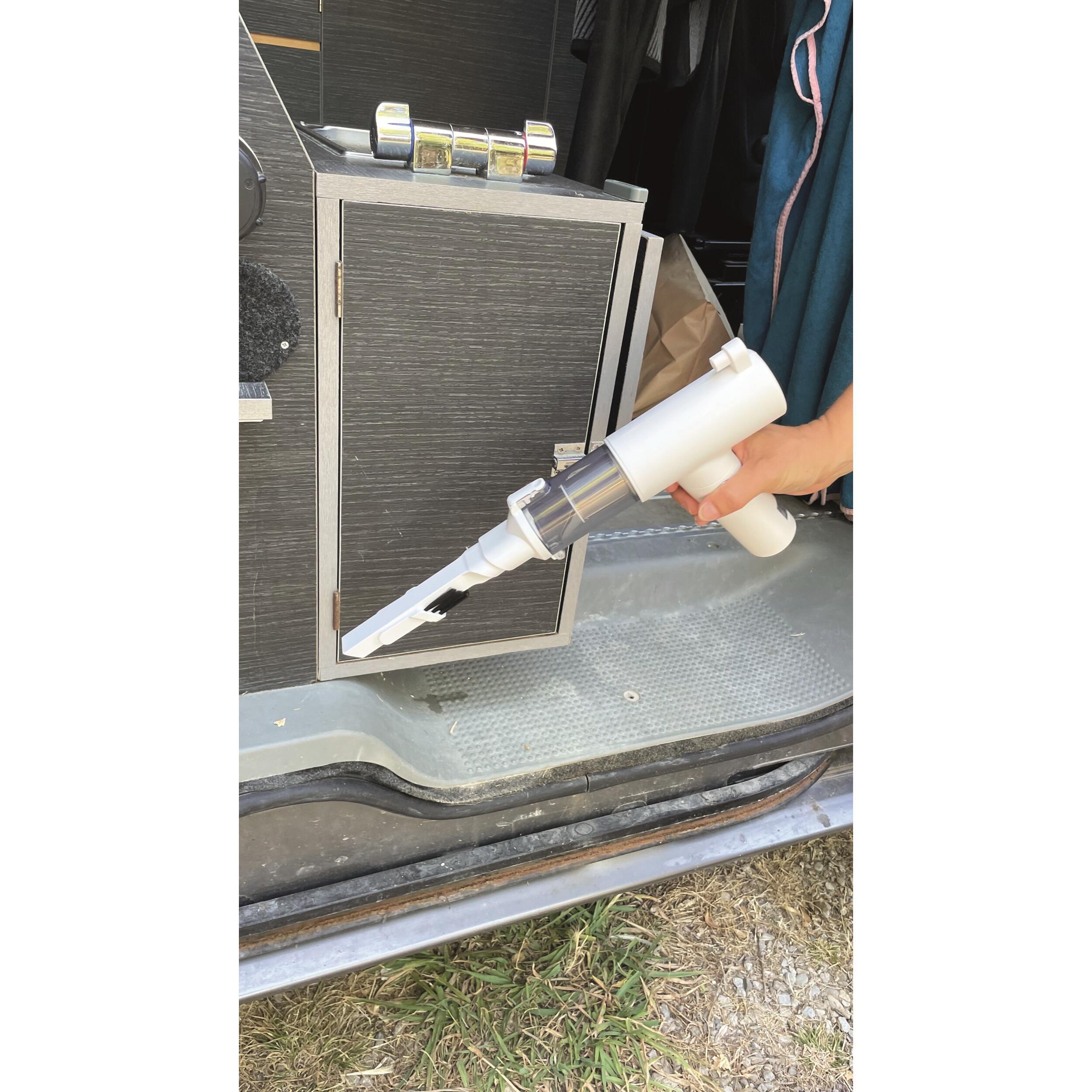 Pratique et sans fil, ce mini aspirateur trouve facilement sa place dans un camping-car, une caravane, un fourgon ou un van. Il est parfait pour entretenir les petits recoins ou la cabine de conduite, même en déplacement. Sa batterie lithium rechargeable par USB assure une autonomie de jusqu’à 20 minutes.