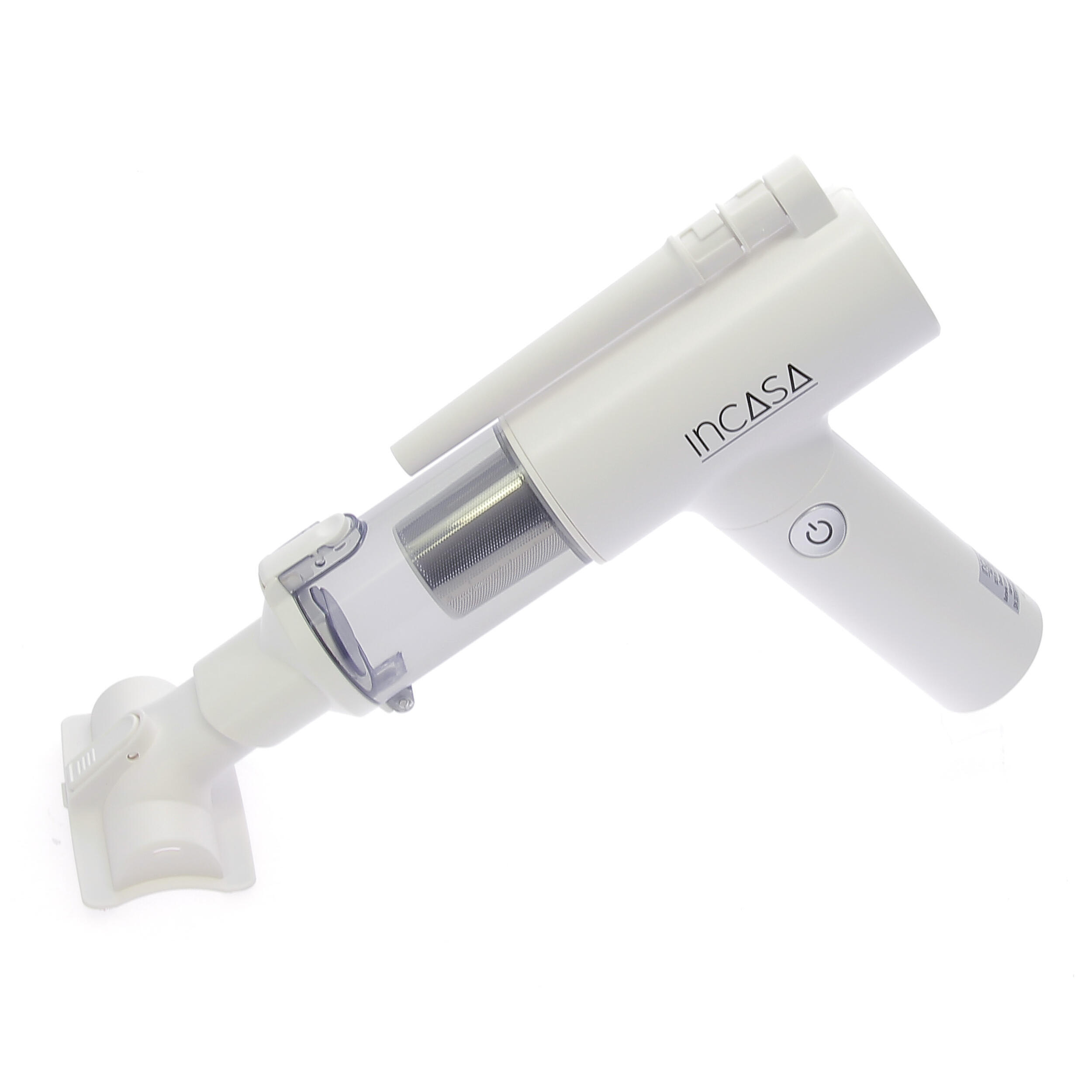 Mini aspirateur à main sans fil INCASA, compact et léger. Il aspire, souffle et gonfle selon vos besoins. Idéal pour les les intérieurs de camping-car, caravane, fourgon ou van !