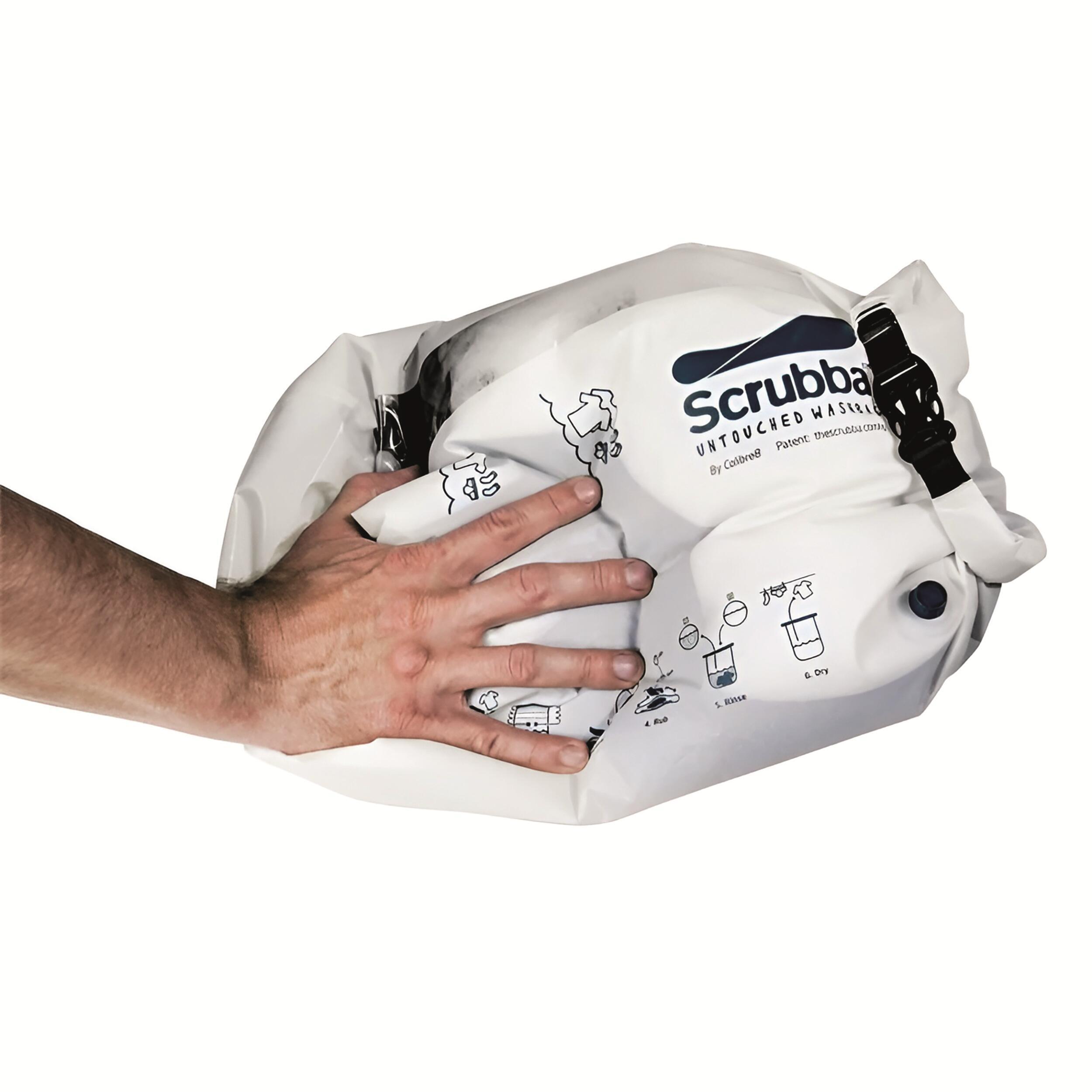 Sac lave-linge portable Scrubba, léger et compact, idéal pour laver vos vêtements partout.